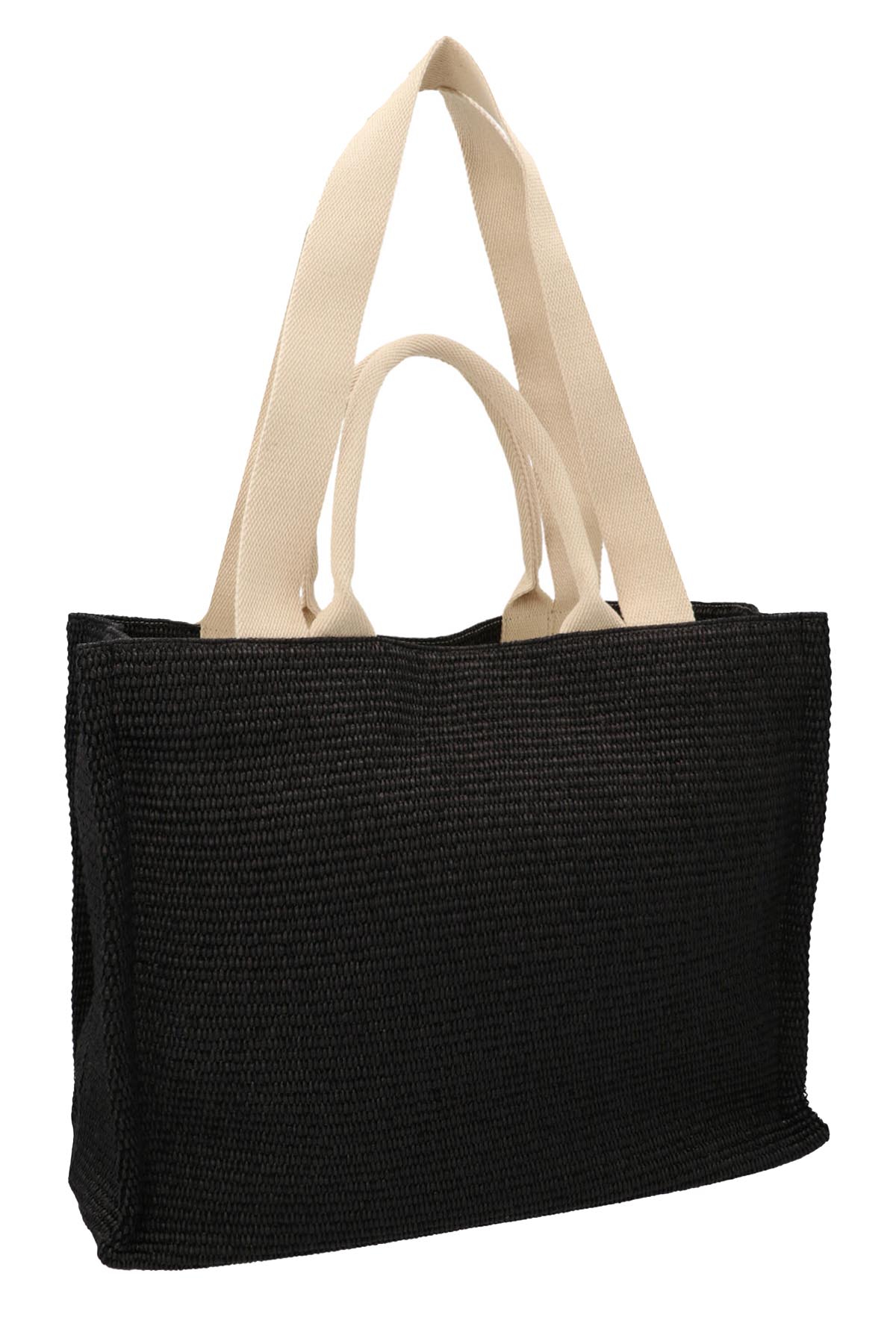 'Tote' raffia shopping bag with double canvas handle and front logo embroidery.