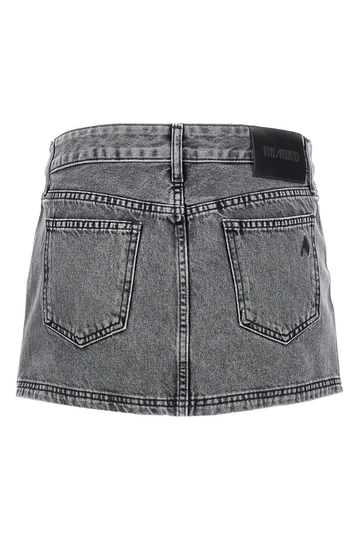 Cotton denim mini skirt, multi pockets, zip and button closure, back leather logo tag.
