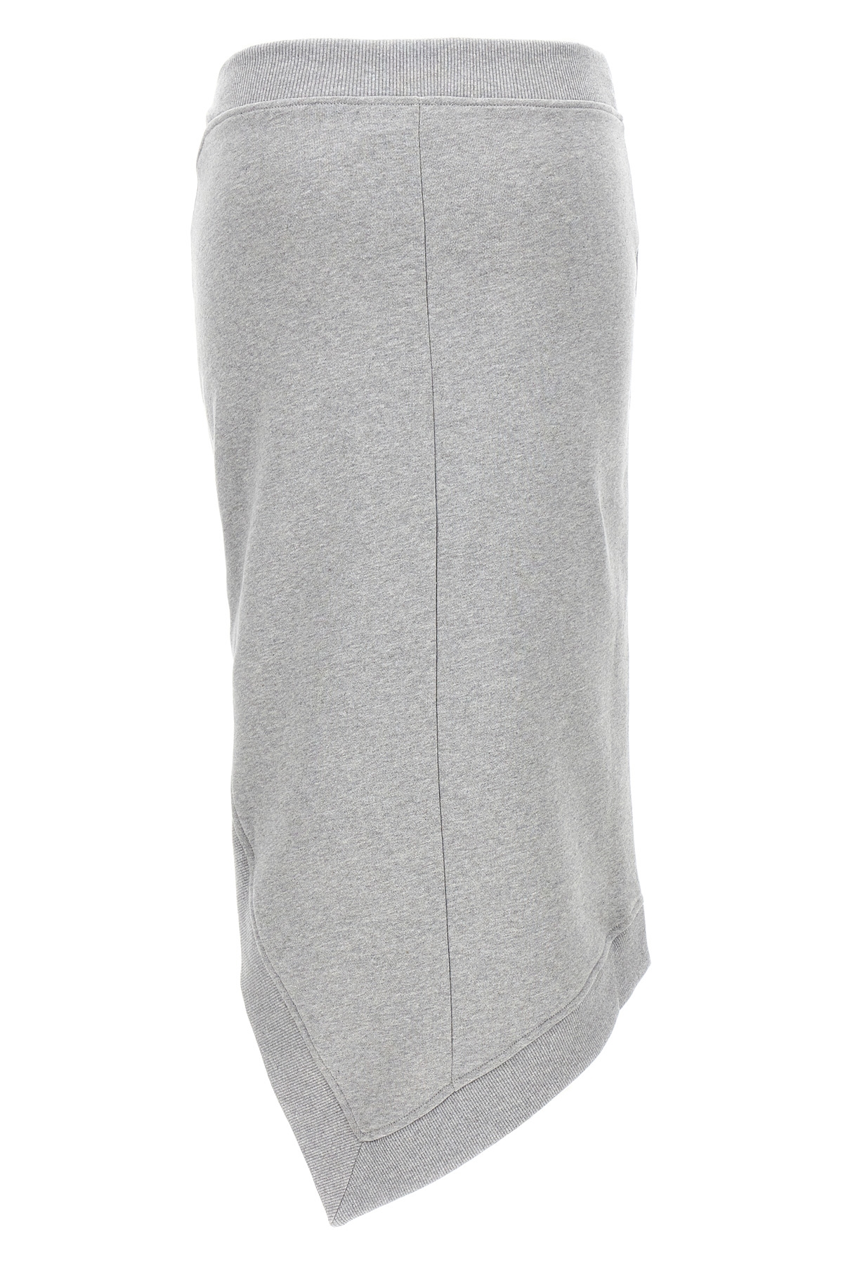 Midi skirt in fleece, asymmetrical cut with front split, front logo patch, elastic waistband.