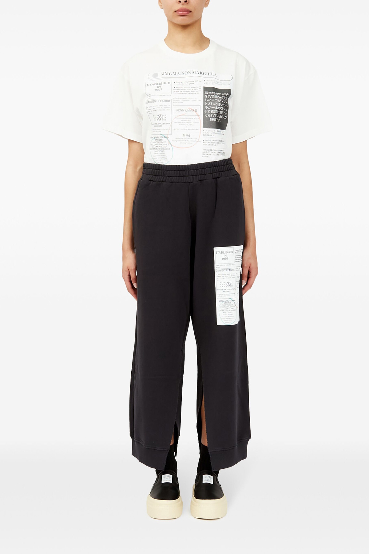 Brushed cotton joggers with front print, 'White stitch line' at the back, elastic waistband, high waist model with wide leg, pockets, cuffs and slit on the leg bottom.