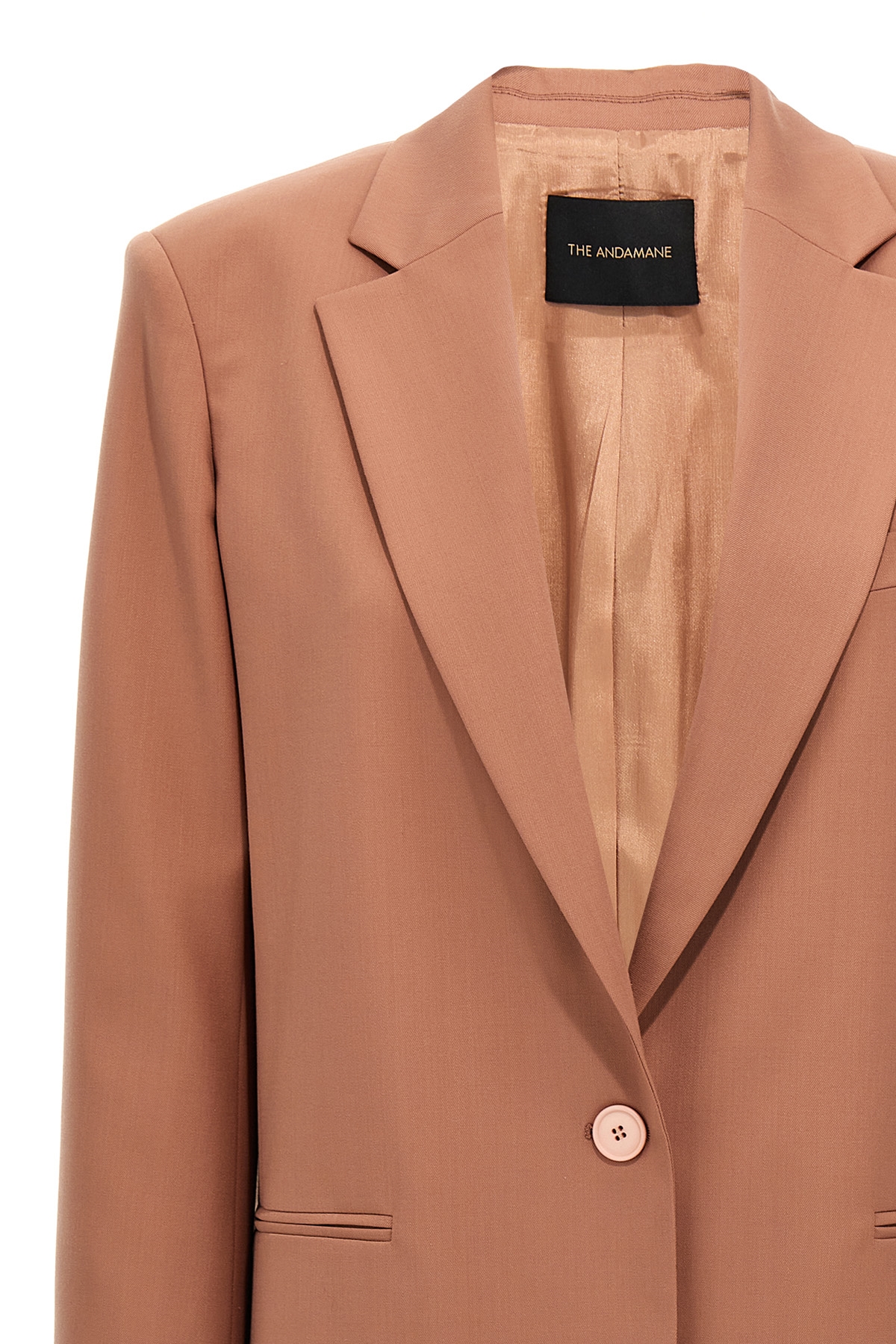 'Guia' single-breasted wool blend blazer with button closure, pockets, padded shoulders, long sleeves, back vent.