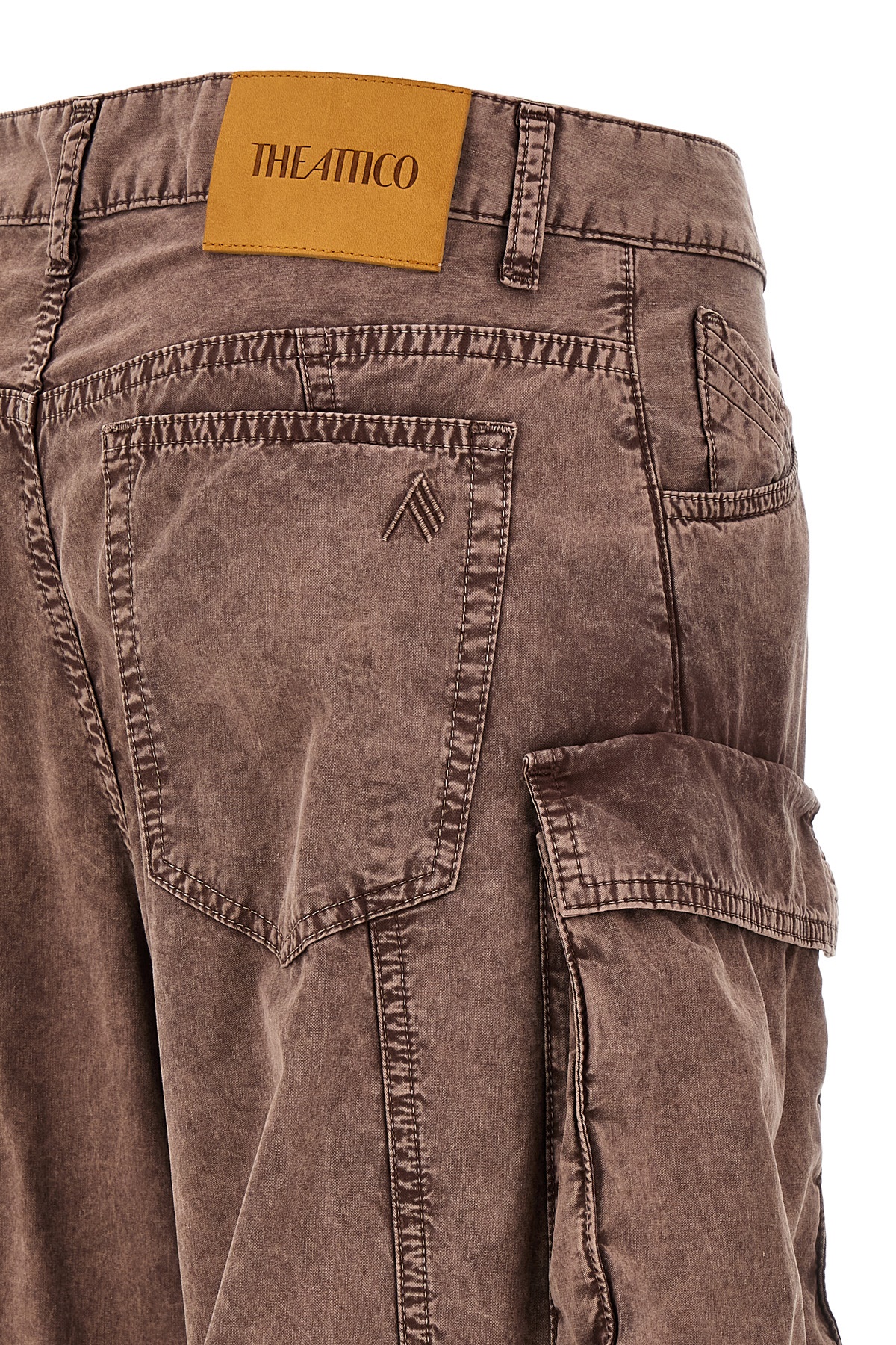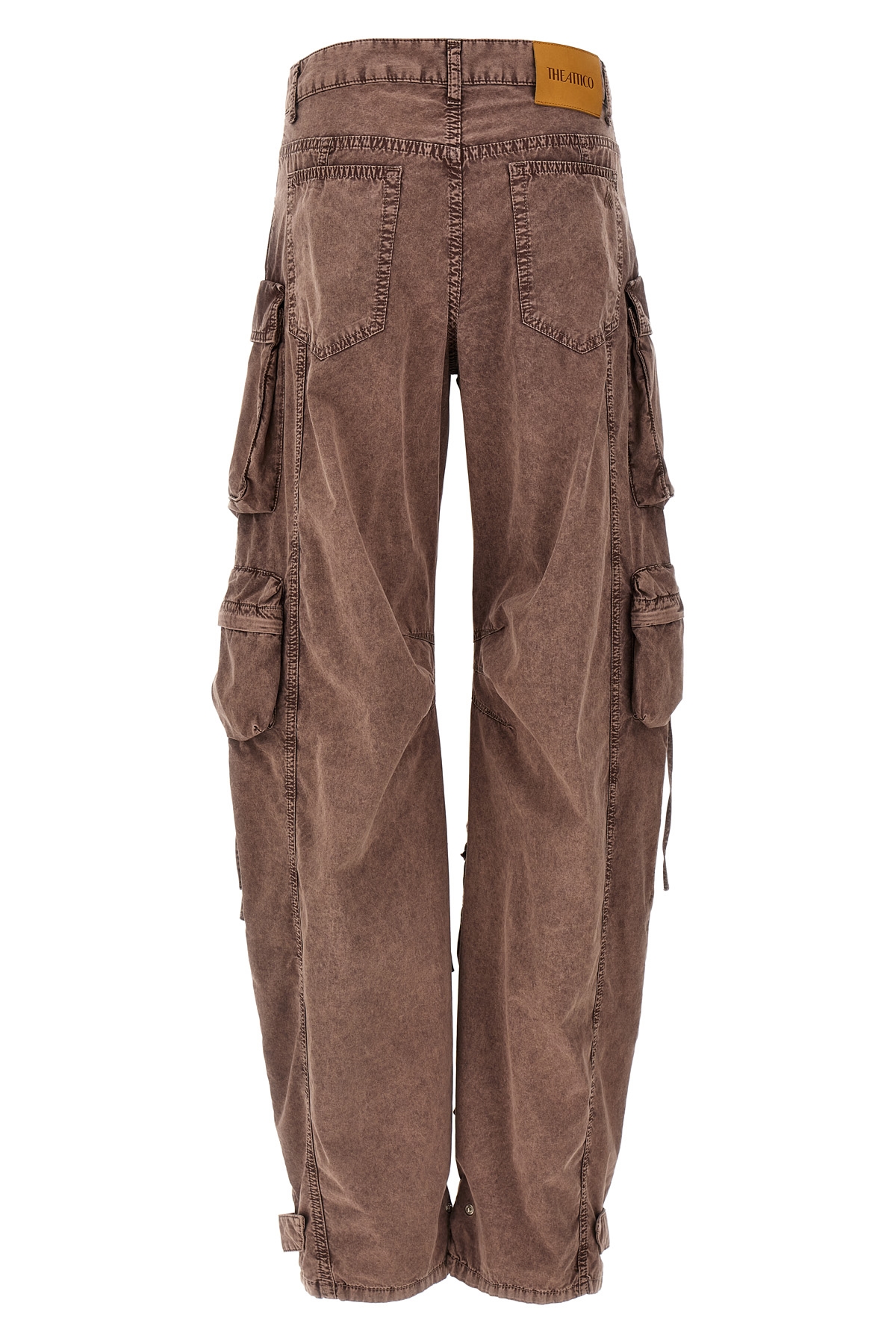 'Fern' washed mauve cotton pants with pockets, zip and button closure, back leather logo tag and adjustable ankle strap detail.