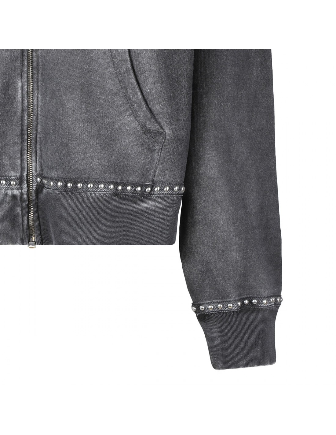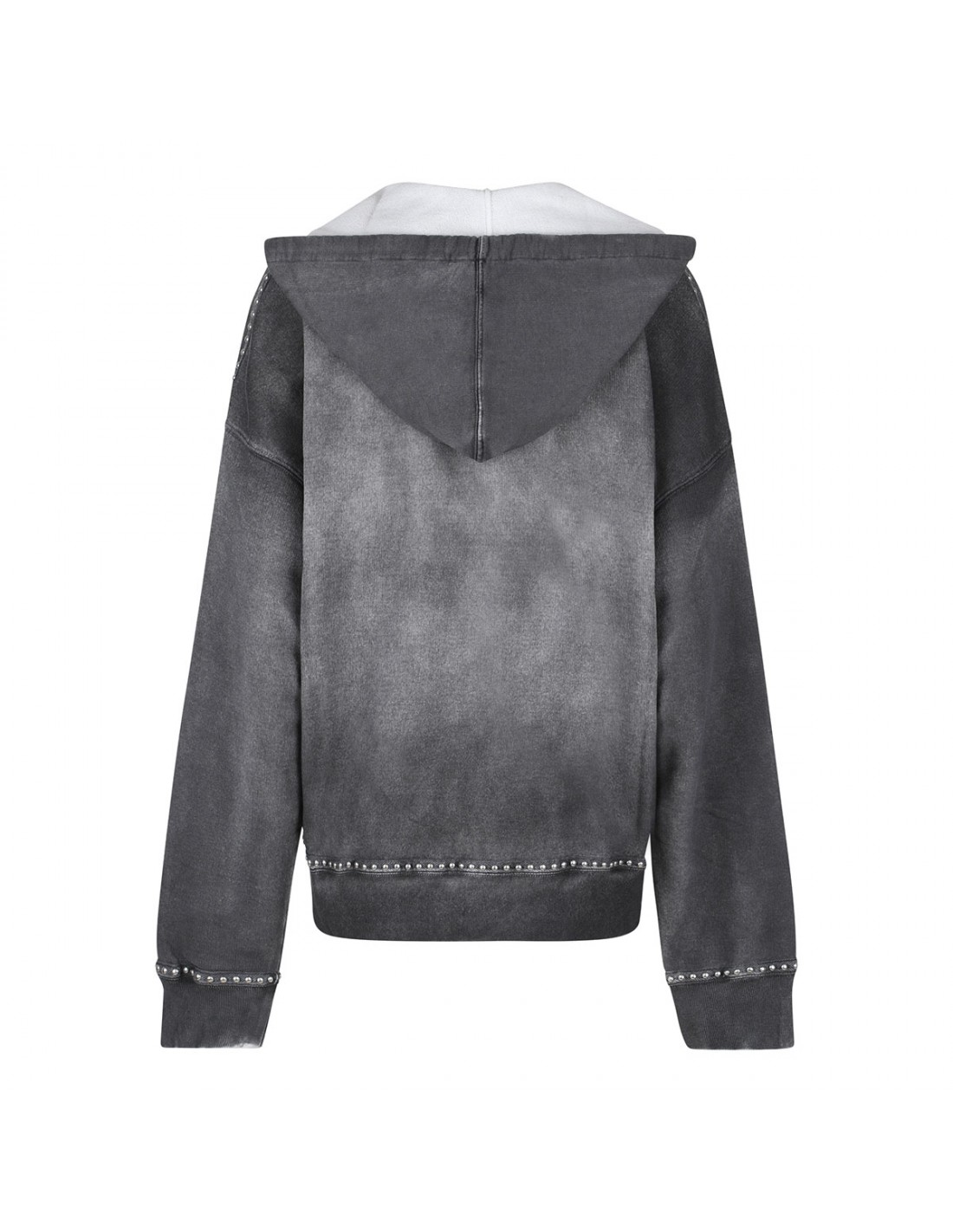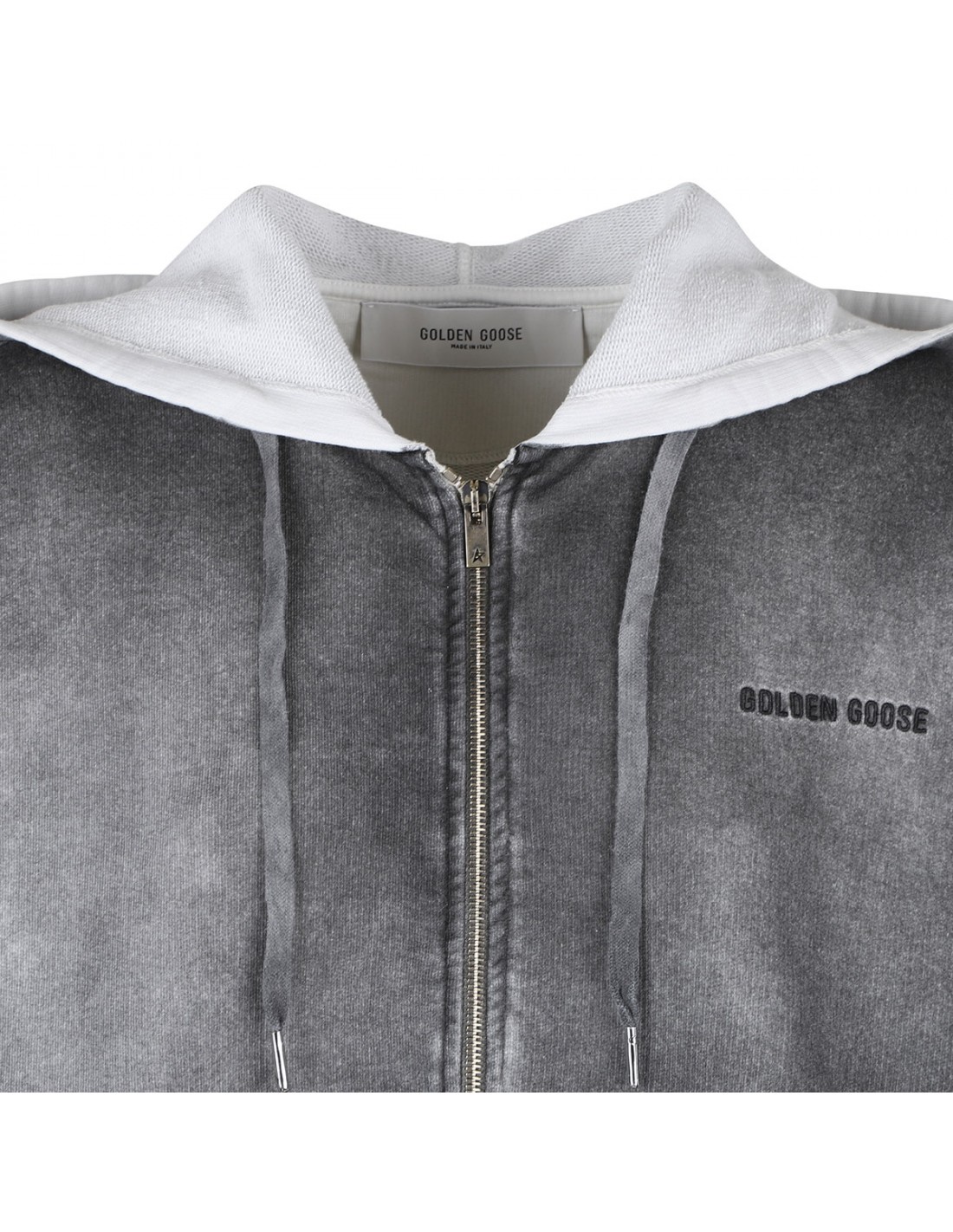 Anthracite gray cotton hoodie from Golden Goose featuring sprayed effect, hood with drawstring and gray inner, decorative studs, logo embroidered on chest, two front pockets, full zip fastening, long sleeves, dropped shoulders.
