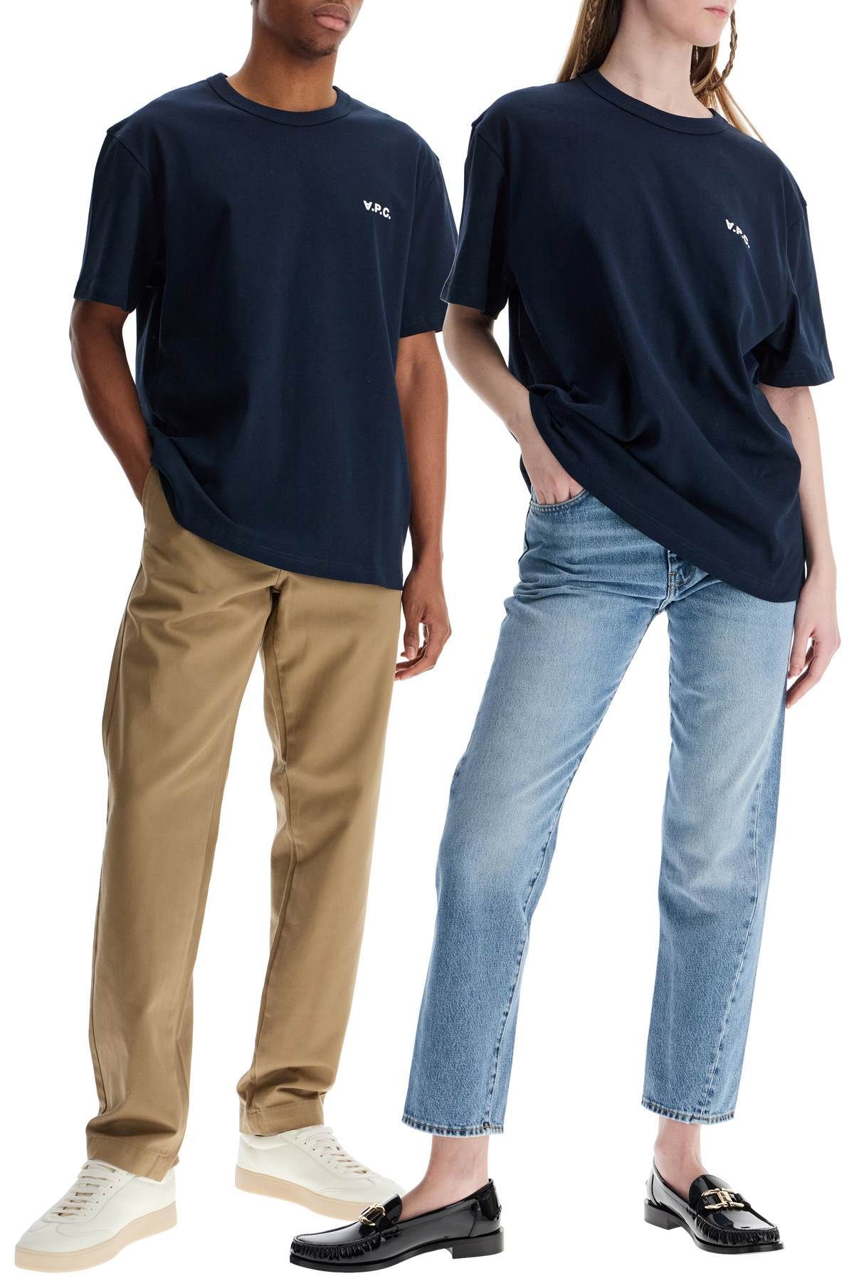 티셔츠 in cotone biologico blu scuro con 로고 ricamato