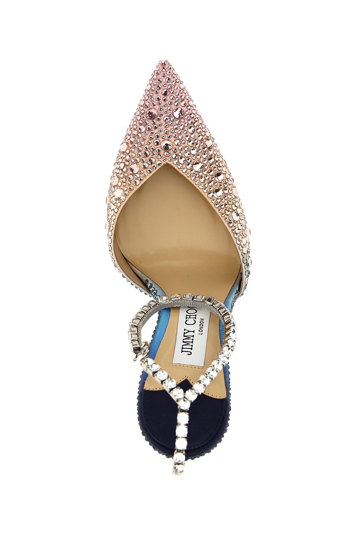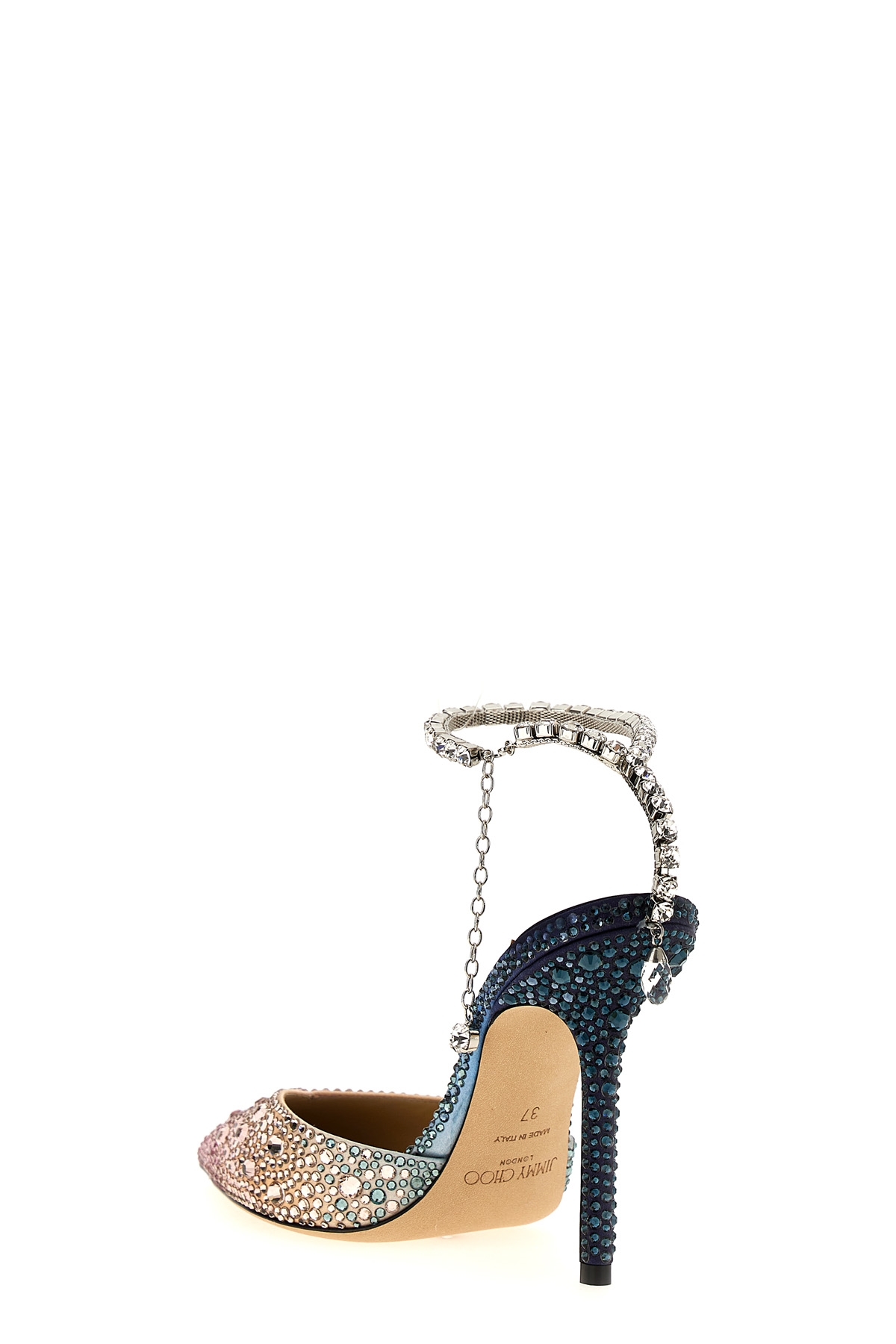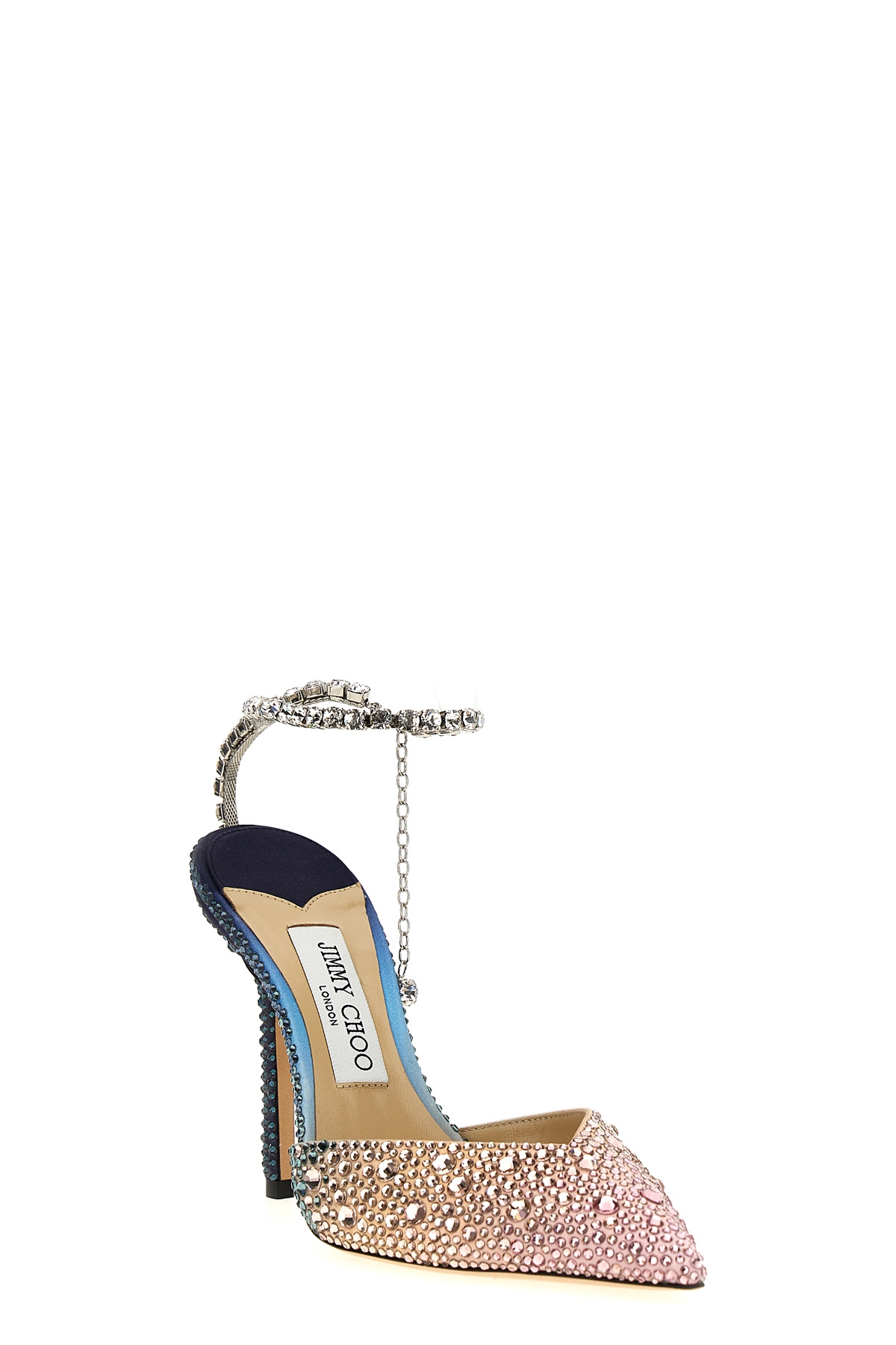 'Saeda' satin pumps with degrade-effect crystals, ankle strap, heel.