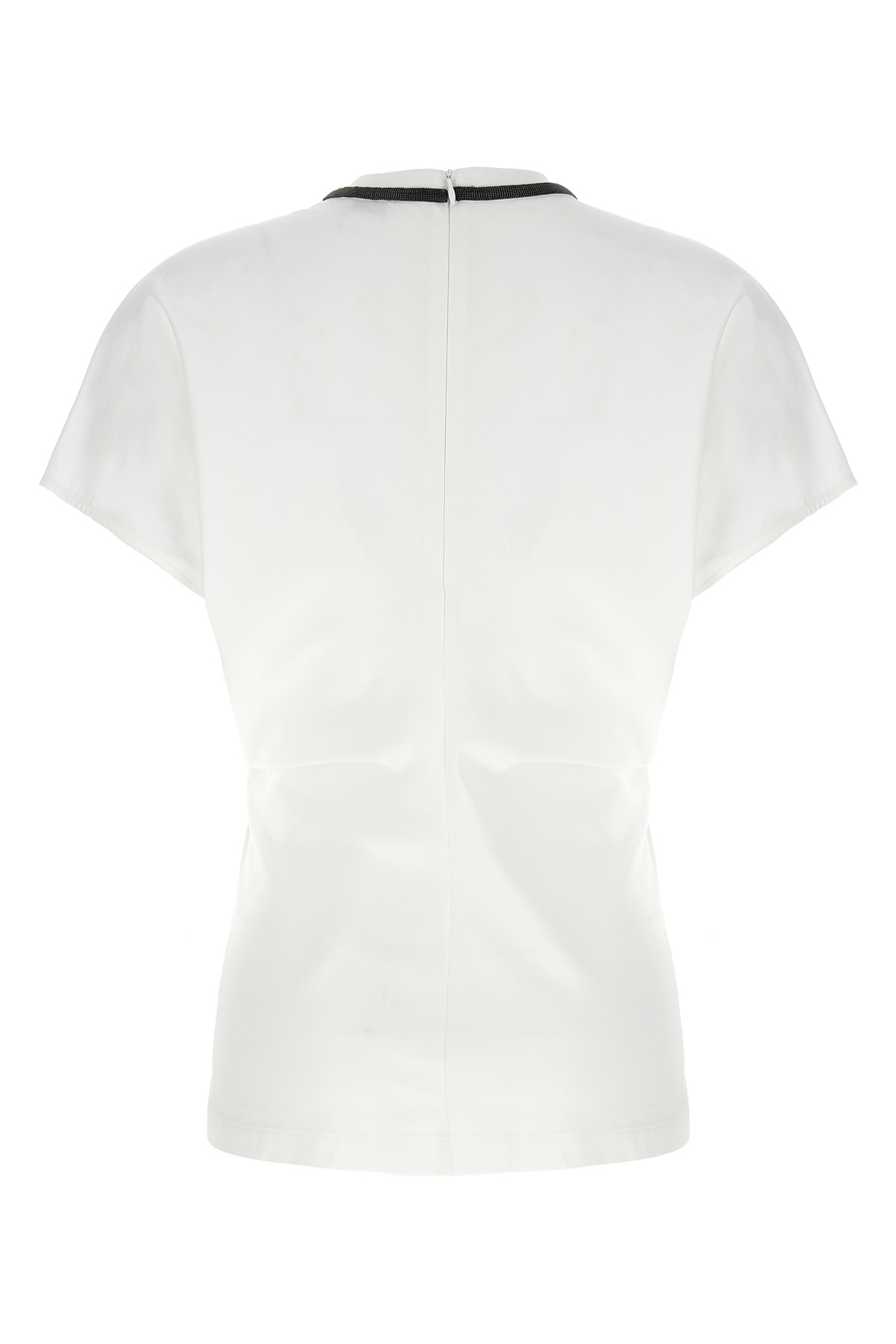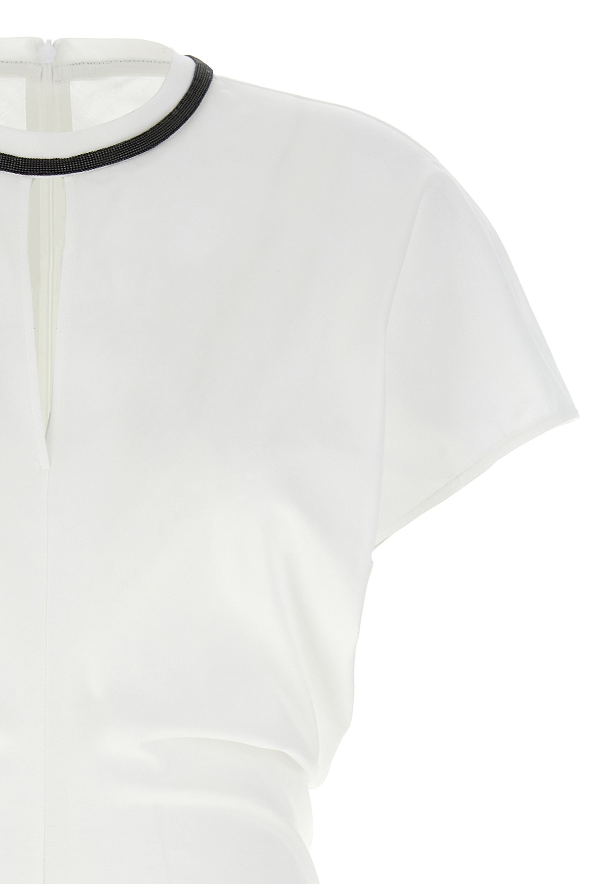 Cotton T-shirt with front cut-out detail and Monile crewneck, back zip closure, fitted waist, and short bat sleeves.
