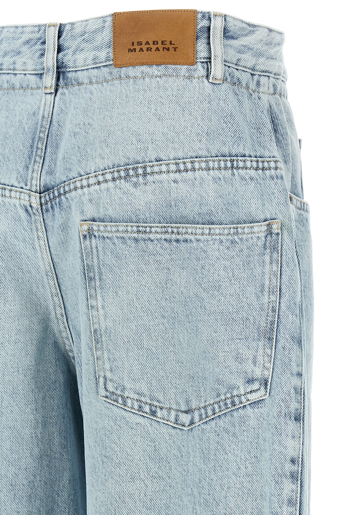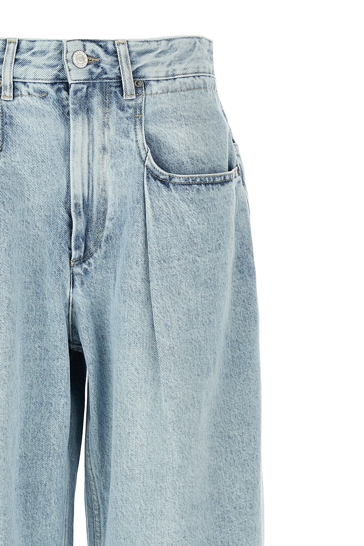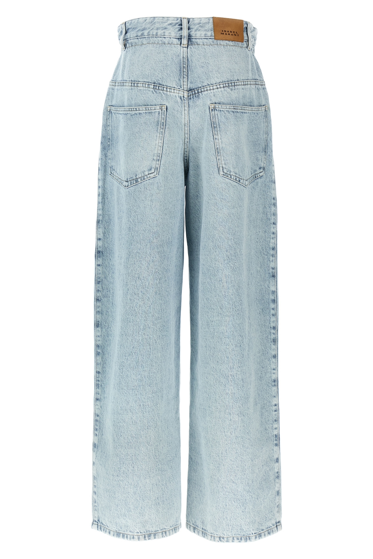 High-waisted cotton denim Rachelle jeans with zip and button closure, five pockets, straight, wide leg with dart under the pocket, and leather logo label at the back.