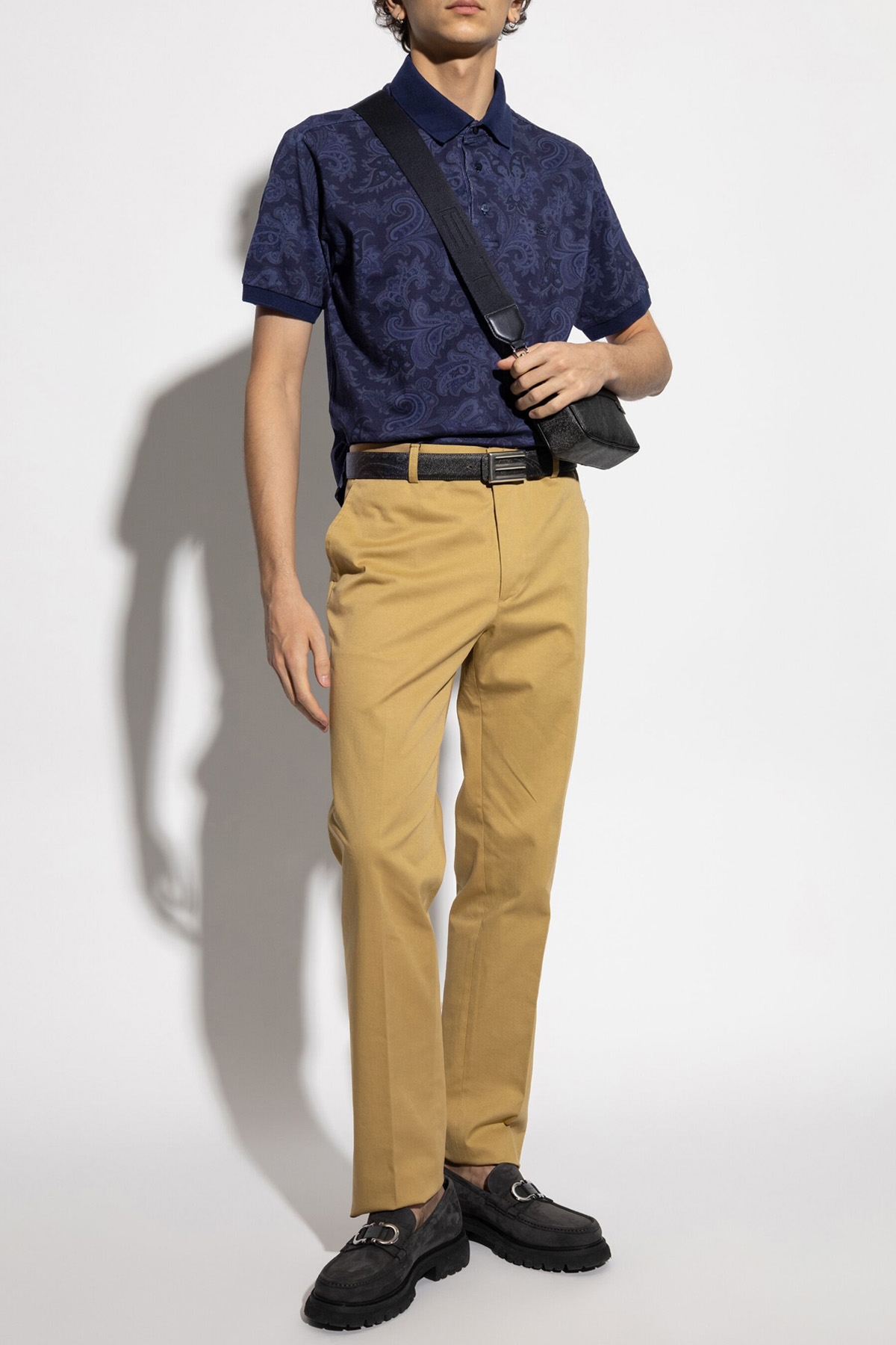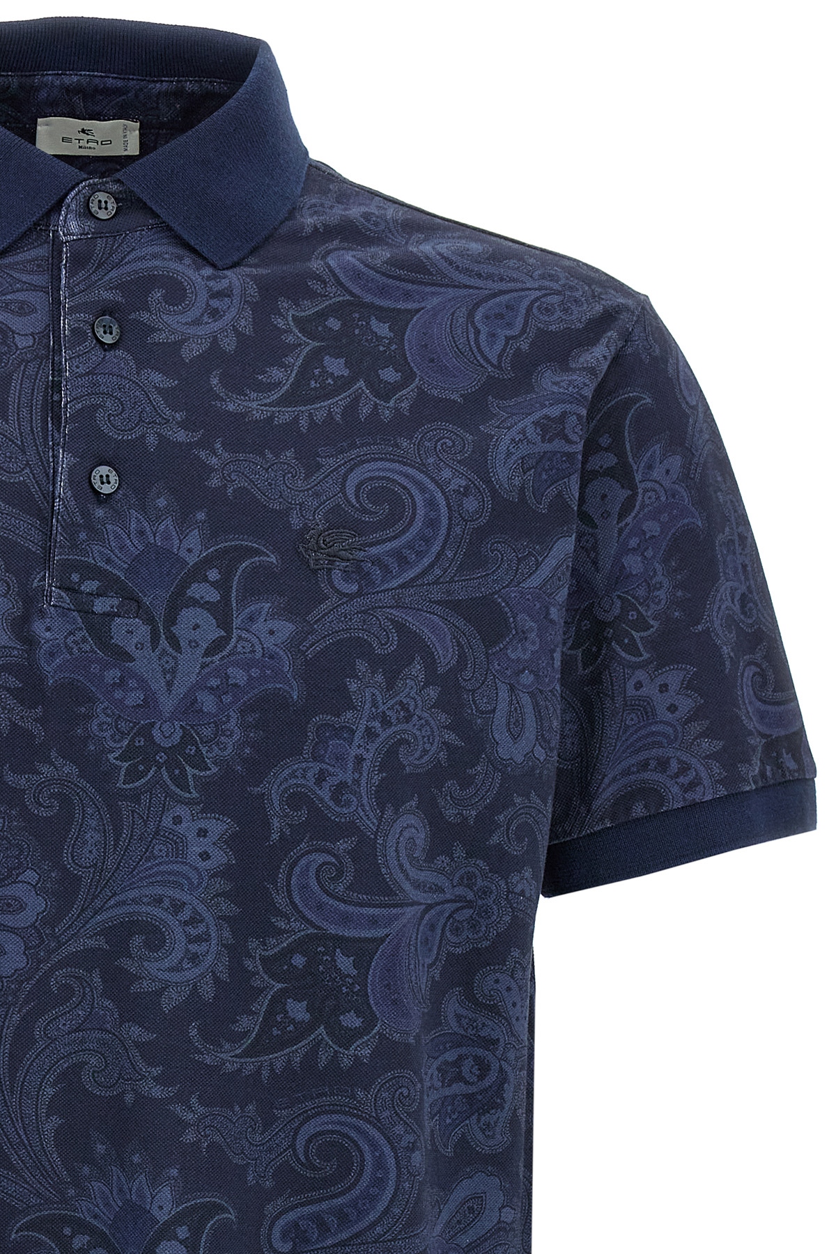 Pique cotton polo shirt with all-over maxi flower Paisley print and solid color details, tone-on-tone logo embroidery on the front, collar and buttons, short sleeves, side splits.