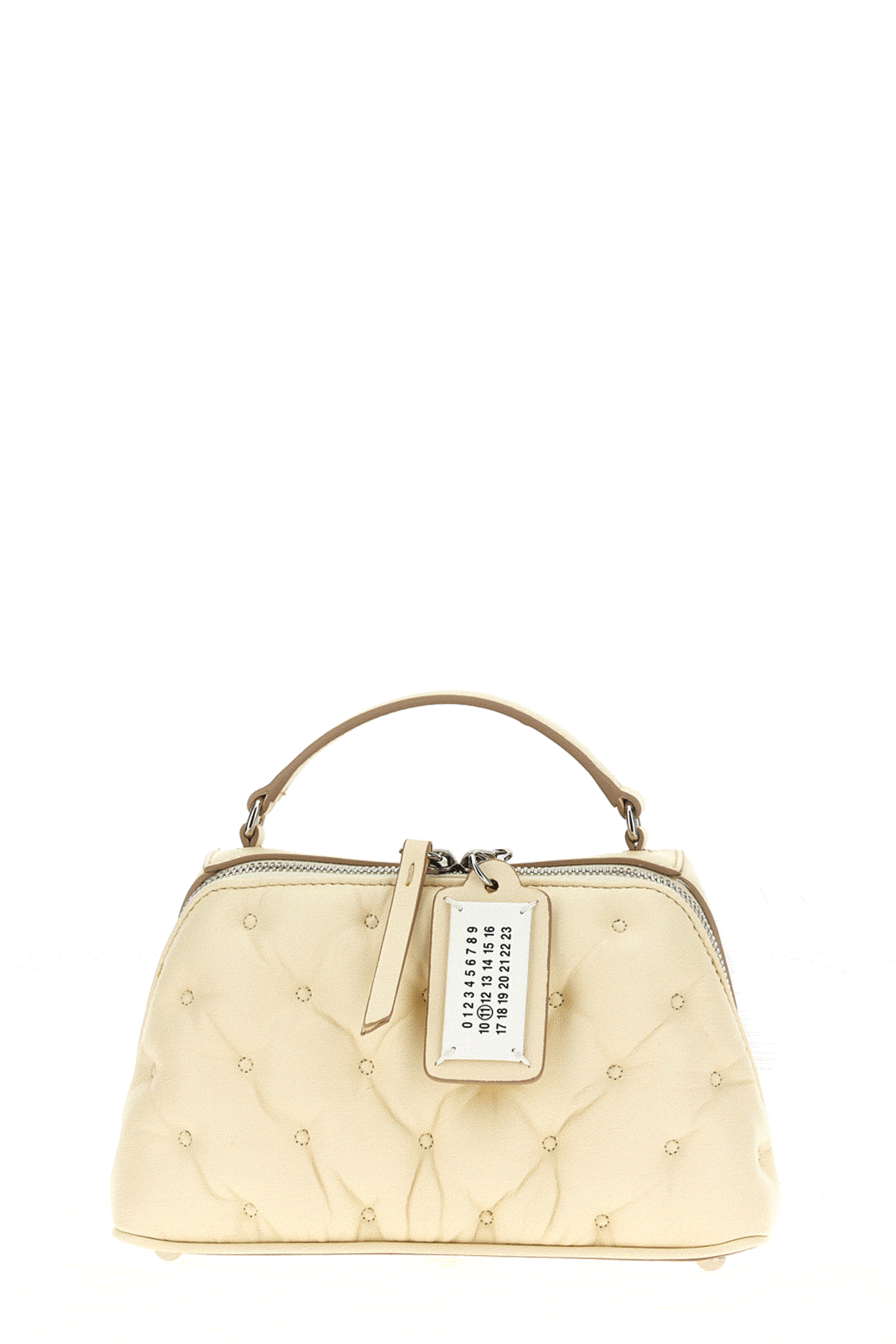 'Glam Slam Trapezoid' quilted nappa leather handbag, fixed handle, zip closure, adjustable and removable shoulder strap, metal details.