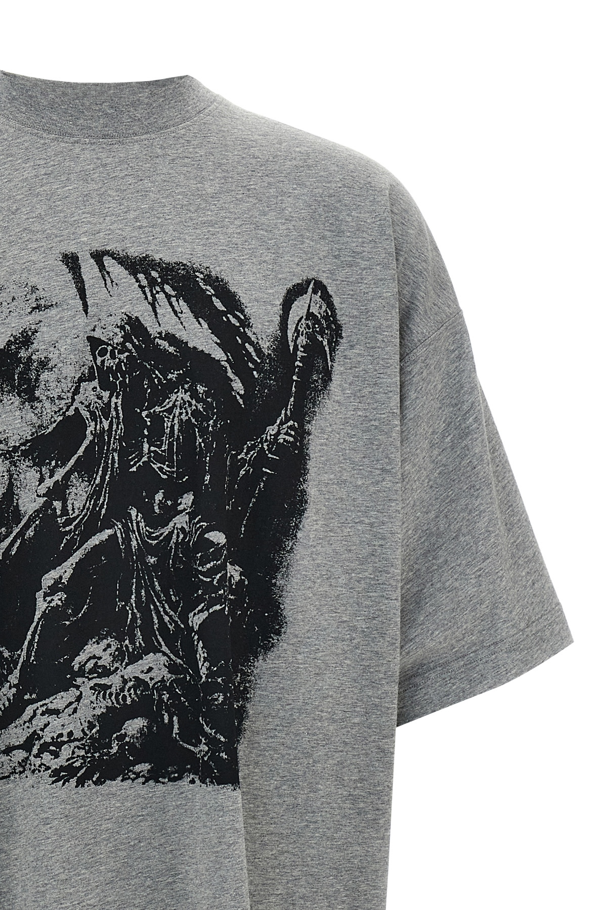 Melange cotton T-shirt with front 'Goth' print, back logo embroidery, crew neck, short sleeves with dropped shoulders.