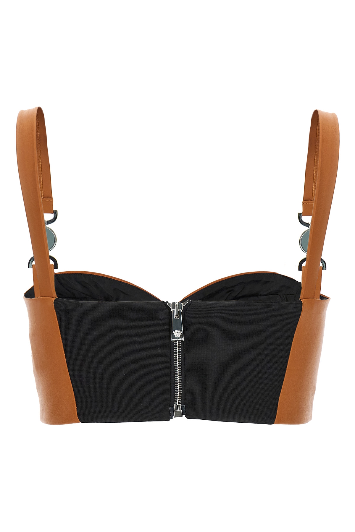'Medusa '95' leather top with textured cups, shoulder straps with Medusa detail, back zip closure and elastic.