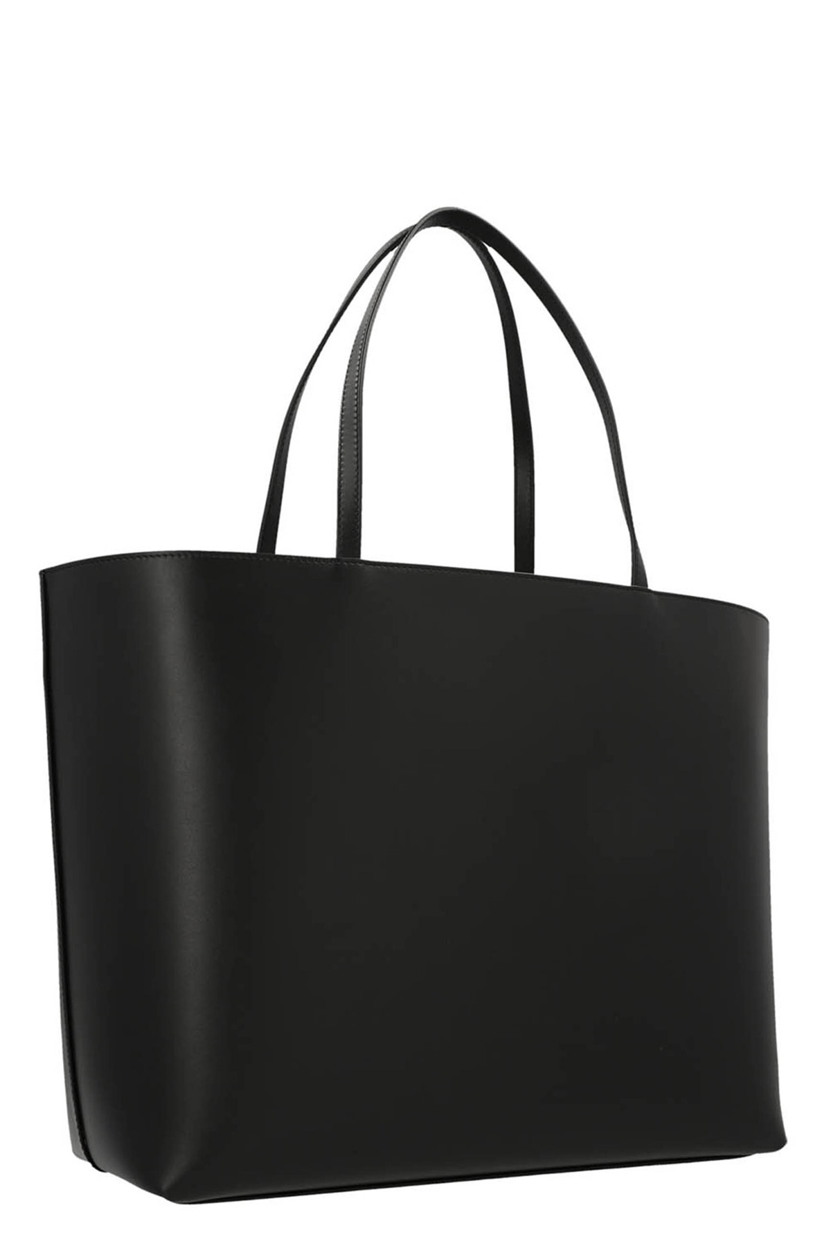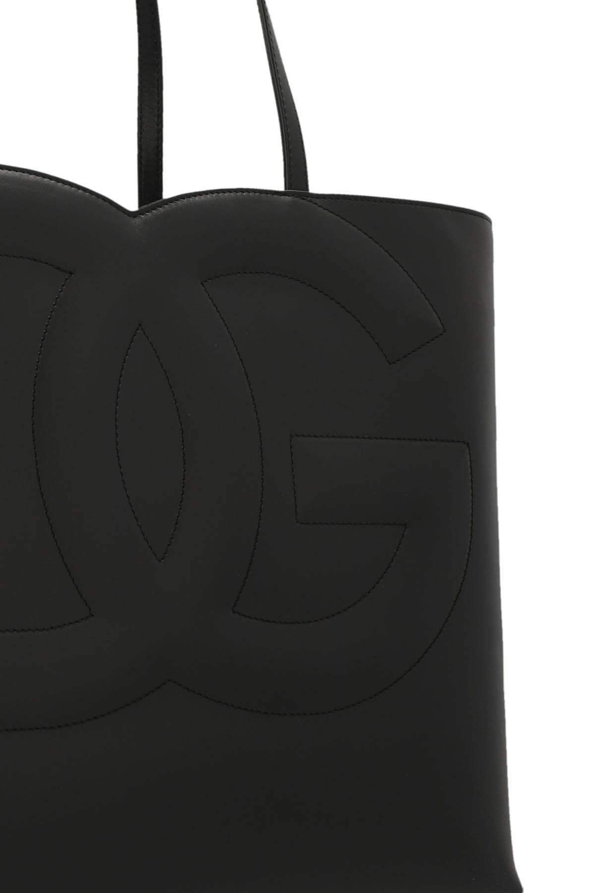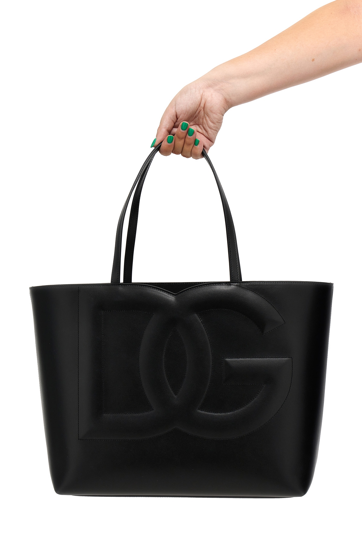Leather 'Logo' midi shopping bag with double handle, front 'Logo' embossed.