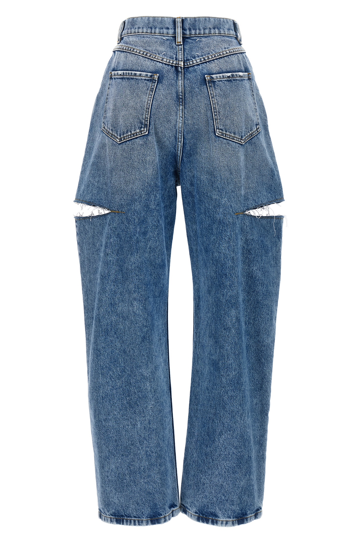 Cotton denim jeans with side cut-out details, straight leg, zip and button closure, five pockets.