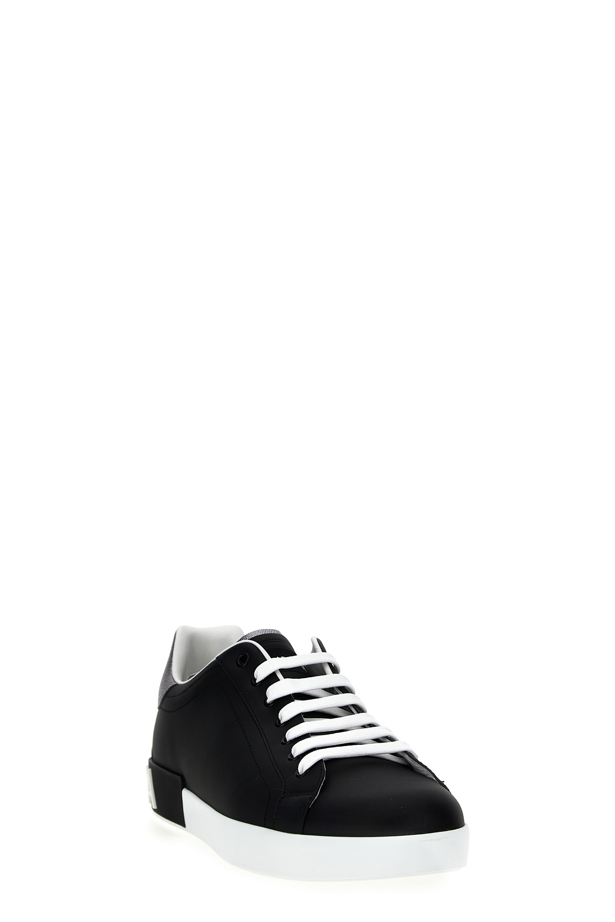 Portofino low sneakers in leather with logo insert, laces, and rubber box sole.