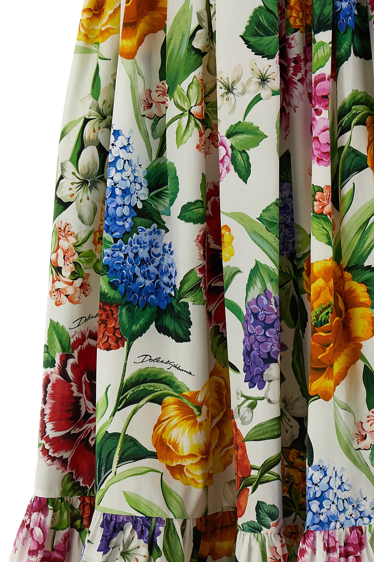 Long flounced skirt in cotton poplin with floral print, high waist model, back zip closure.