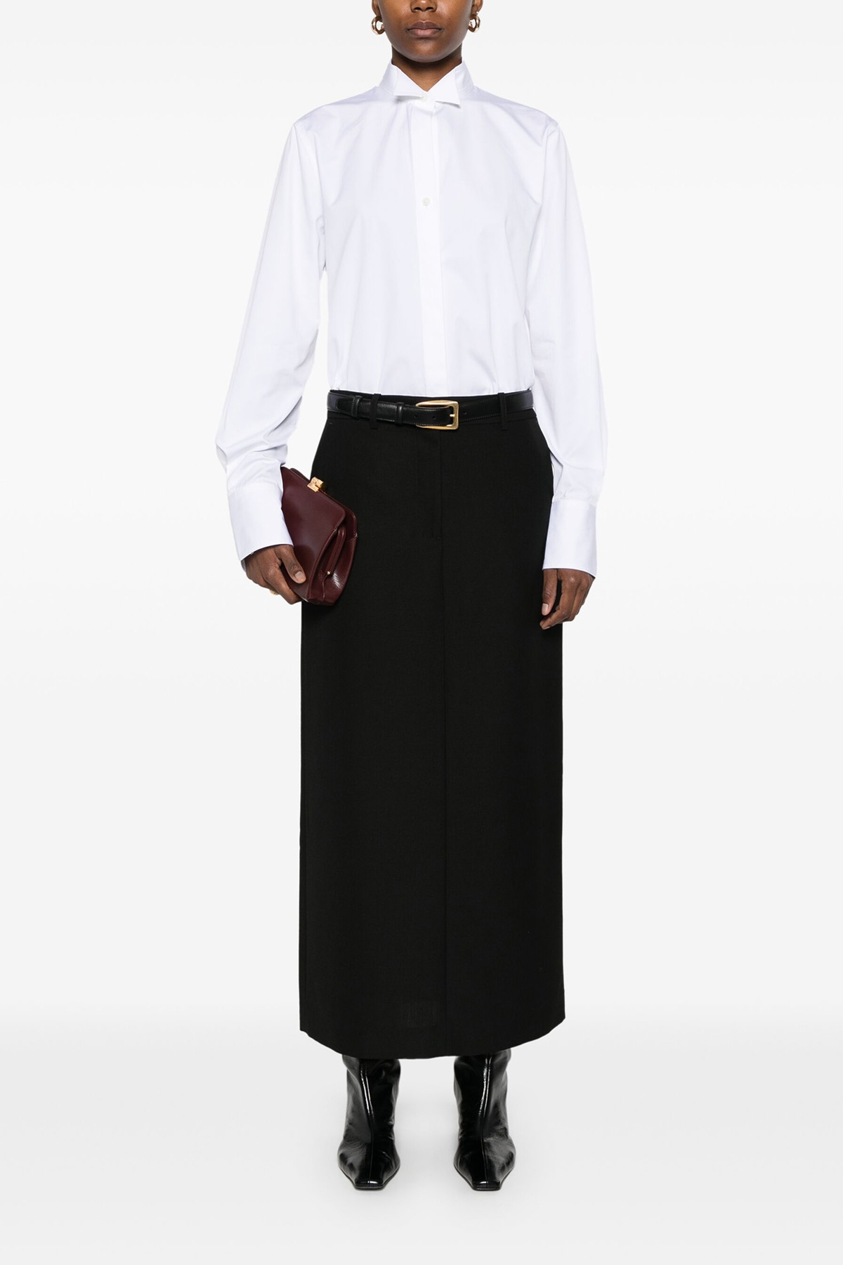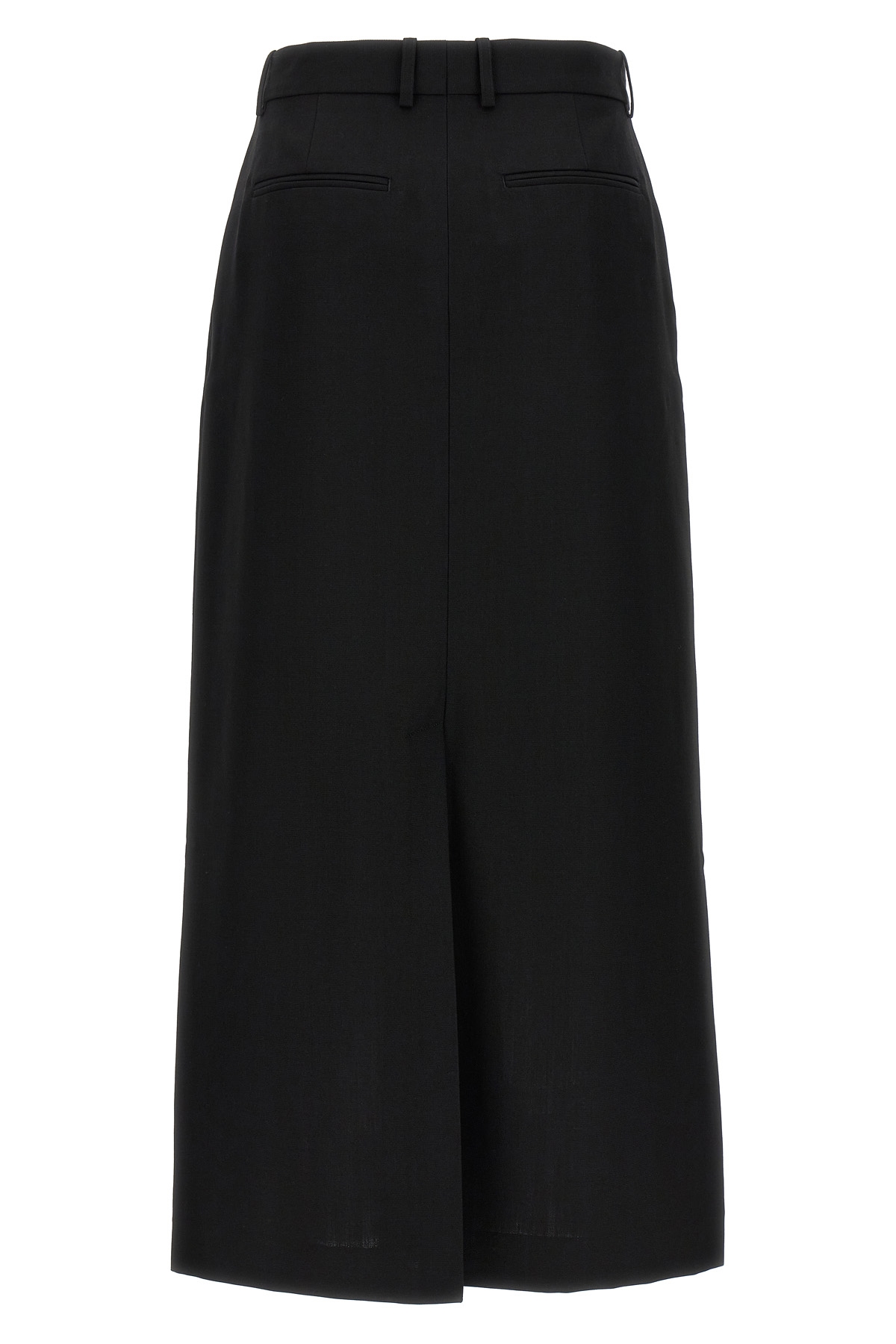 Longuette skirt in wool blend, hook and button zip closure, pockets, back split.
