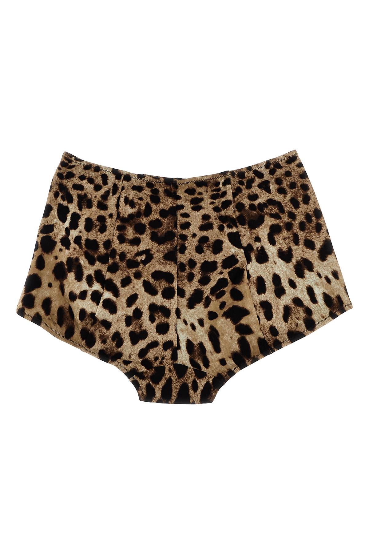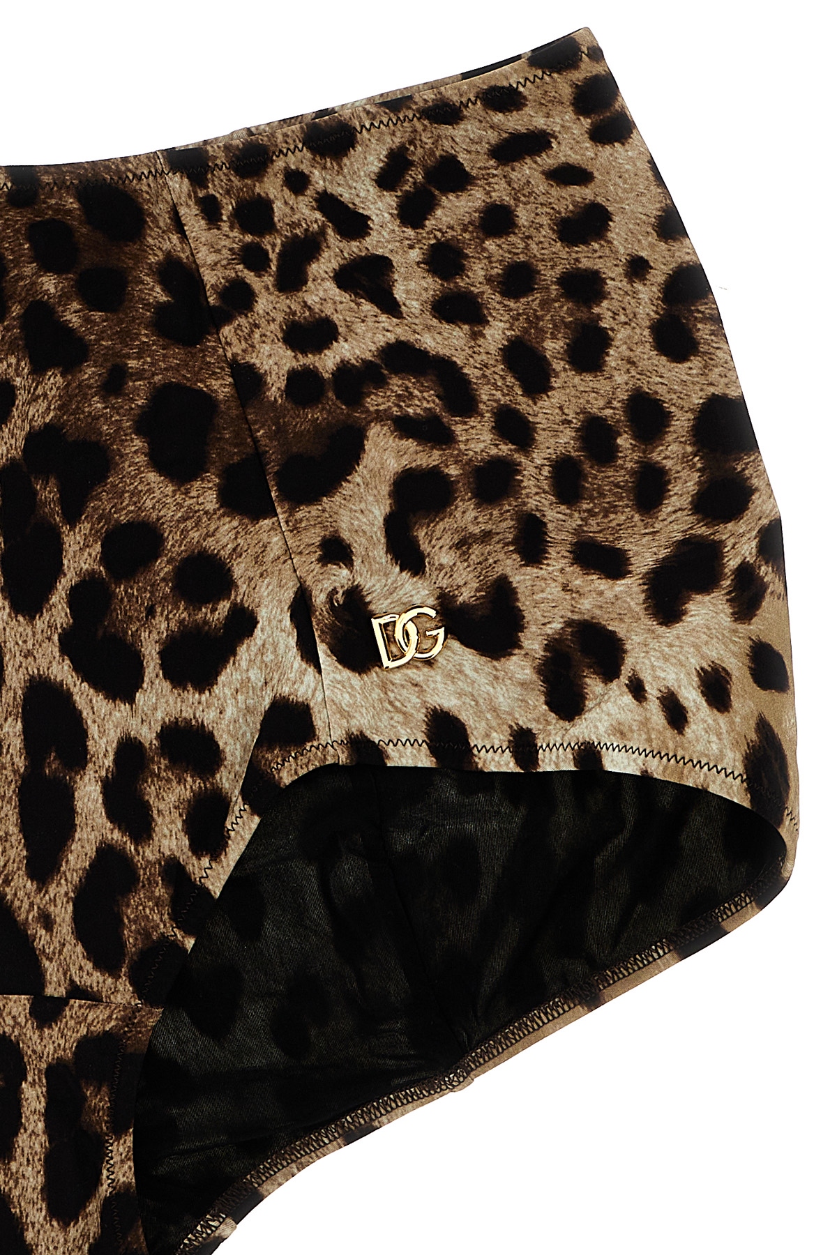 High-waist bikini bottom in stretch fabric with 'Leopard' print, metal logo detail.