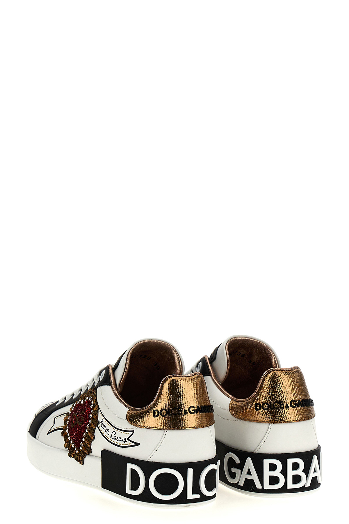 Dolce&Gabbana leather sneakers with an all over print and multicolor details, embellished with a Sacred Heart application