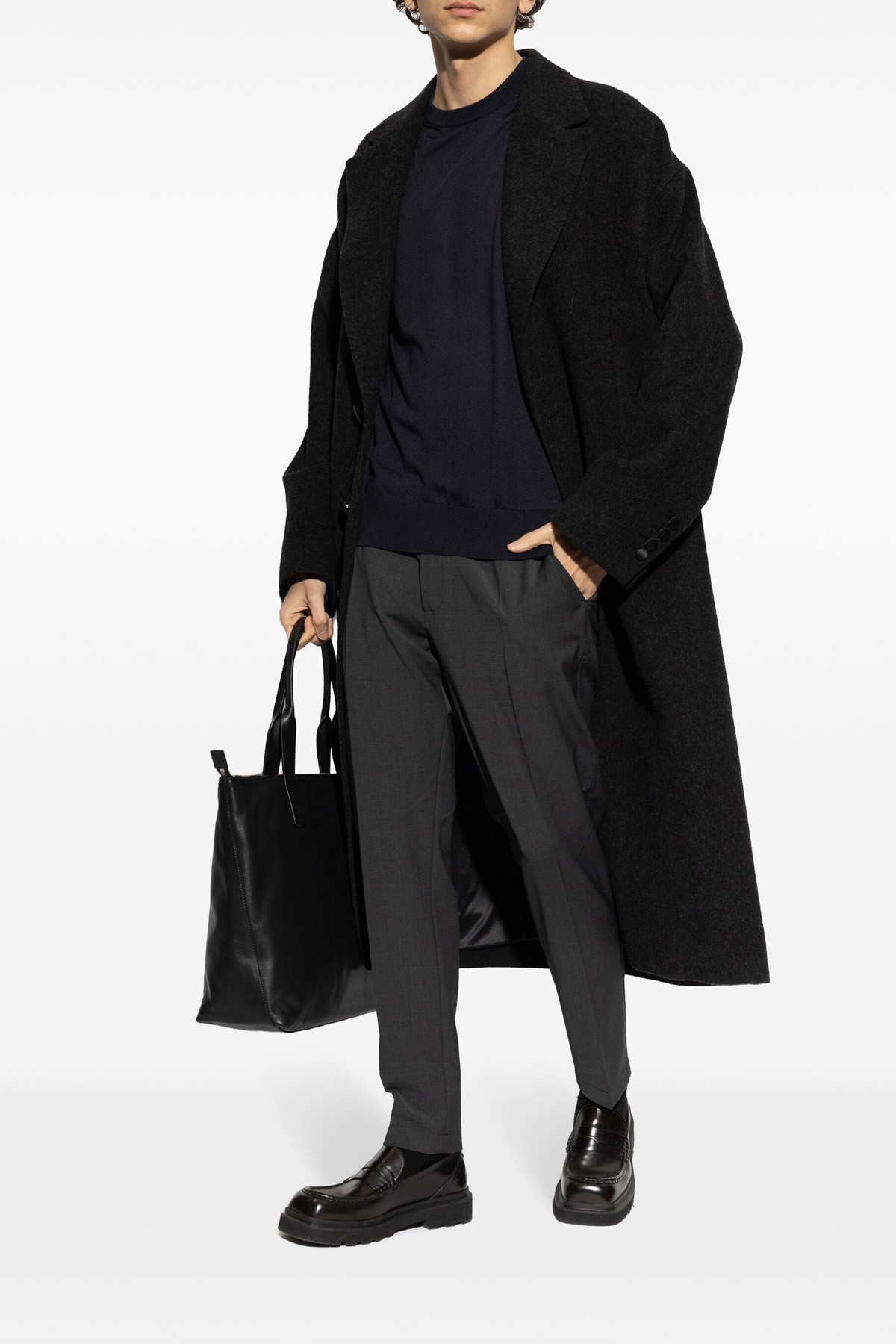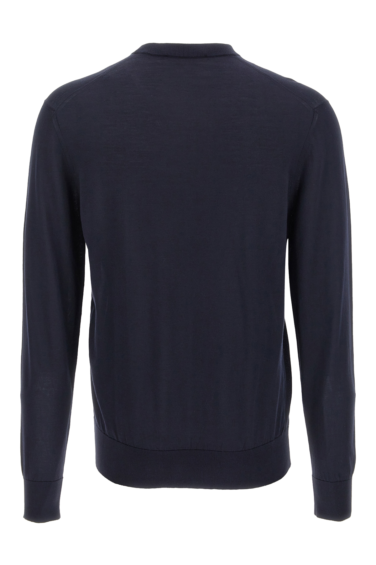 Silk sweater, crew neck, front logo embroidery detail, long cuffed sleeves.