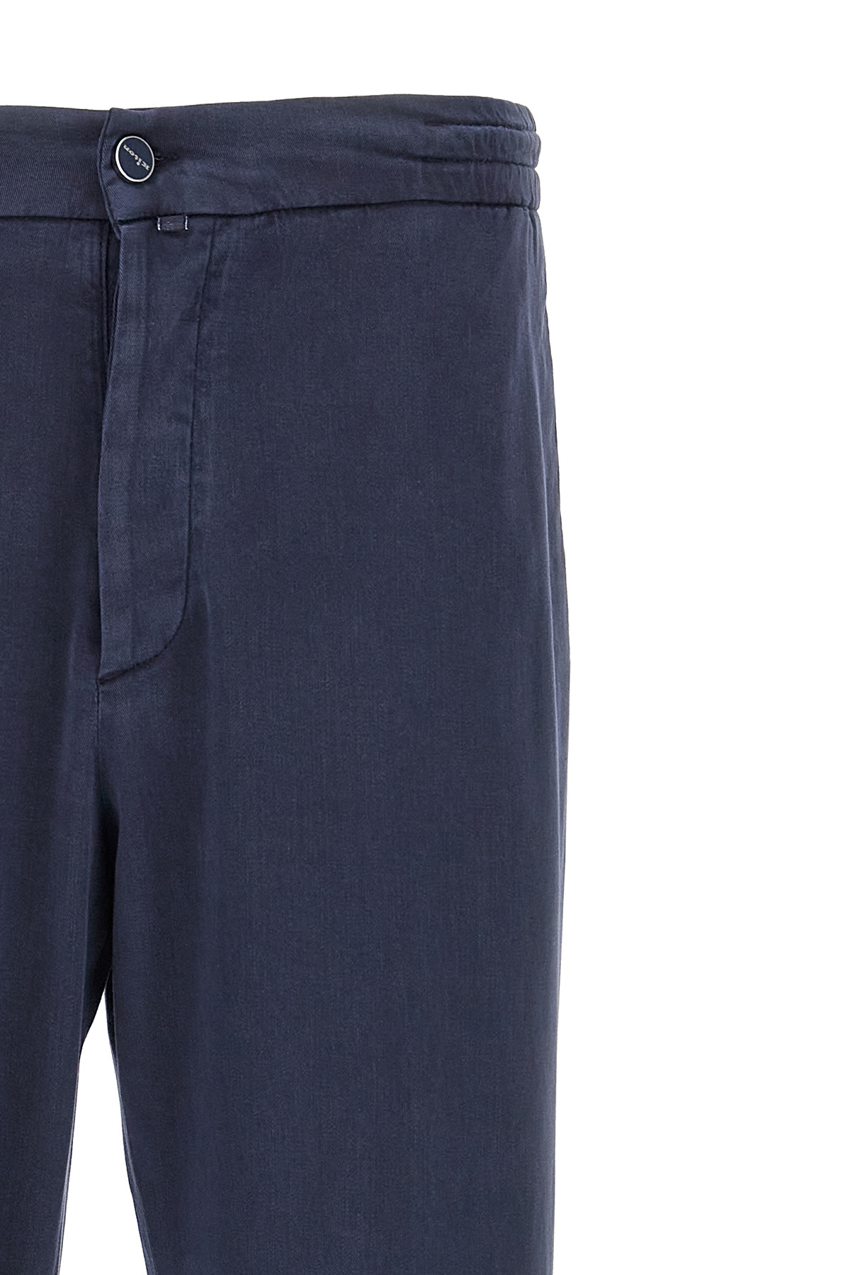 'Up1lac' slightly elasticized cotton blend pants, drawstring elastic waistband, front button closure, pockets, straight leg, side pockets.