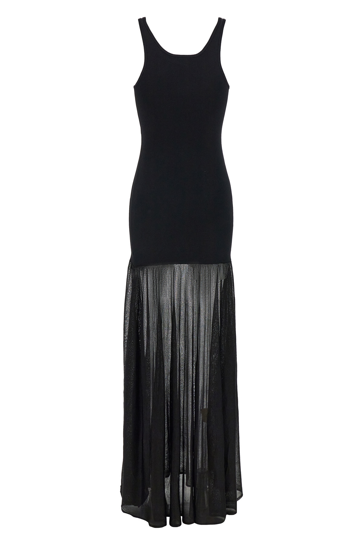 Long 'Evening tank' viscose dress with tight shape in the bust with narrow straps, semi-transparent wide skirt.