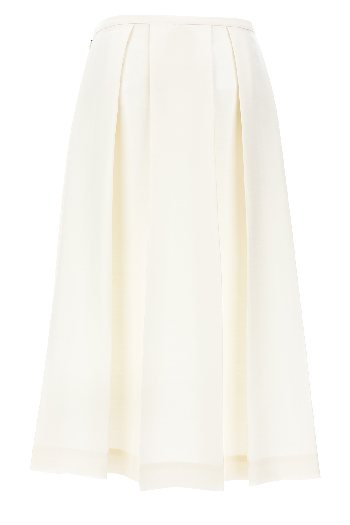 Midi 'Twinflower' pleated skirt, belt at the waist, side hook and zip closure.