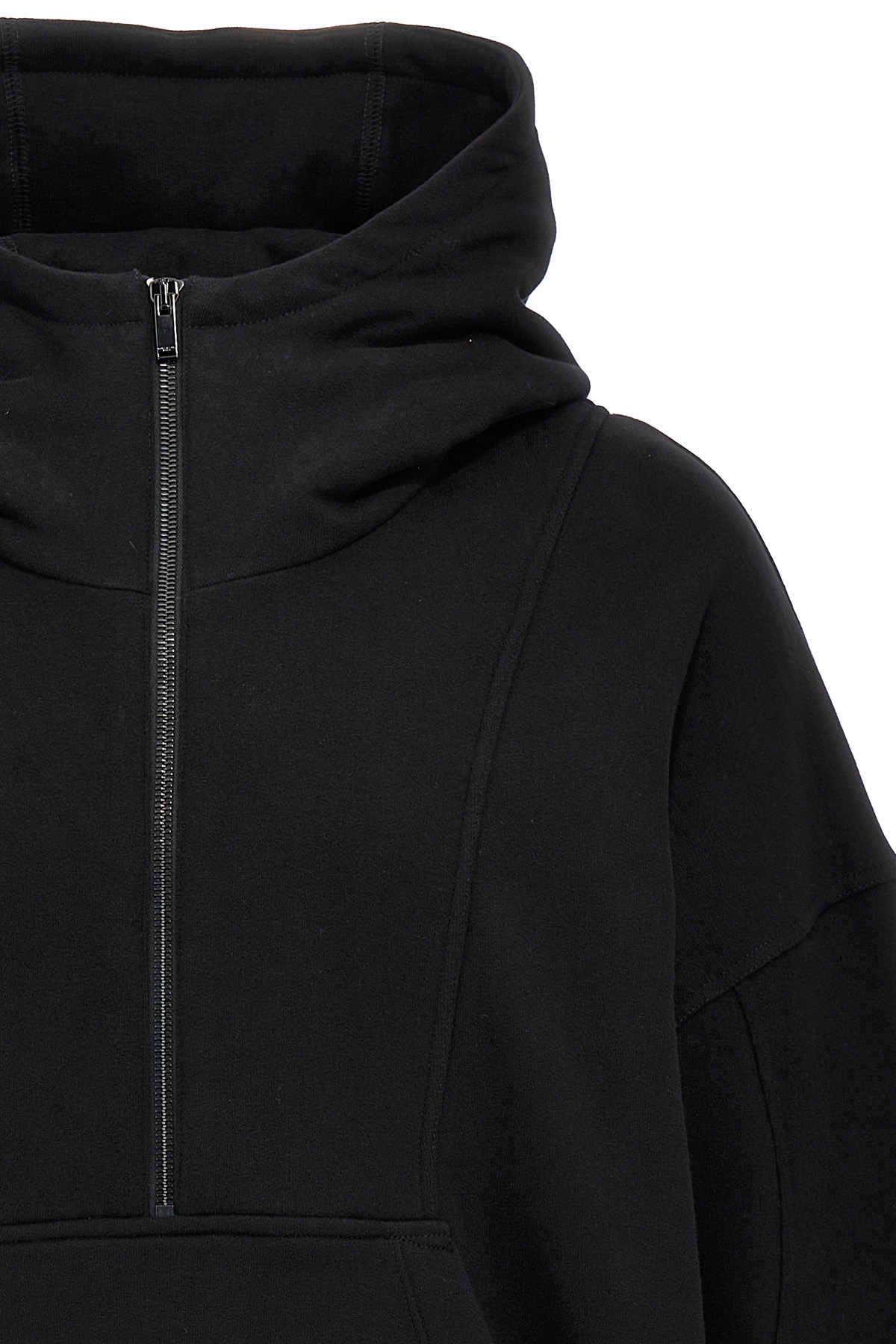 Cotton hoodie with half zip, kangaroo pocket, long cuffed sleeves.