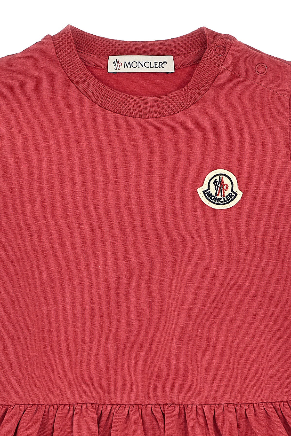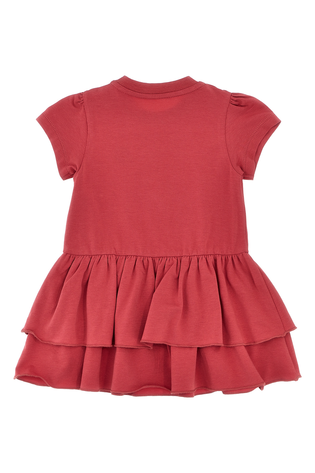 KIDS Stretch cotton dress with flounced skirt, front logo patch, crew neck, short sleeves.