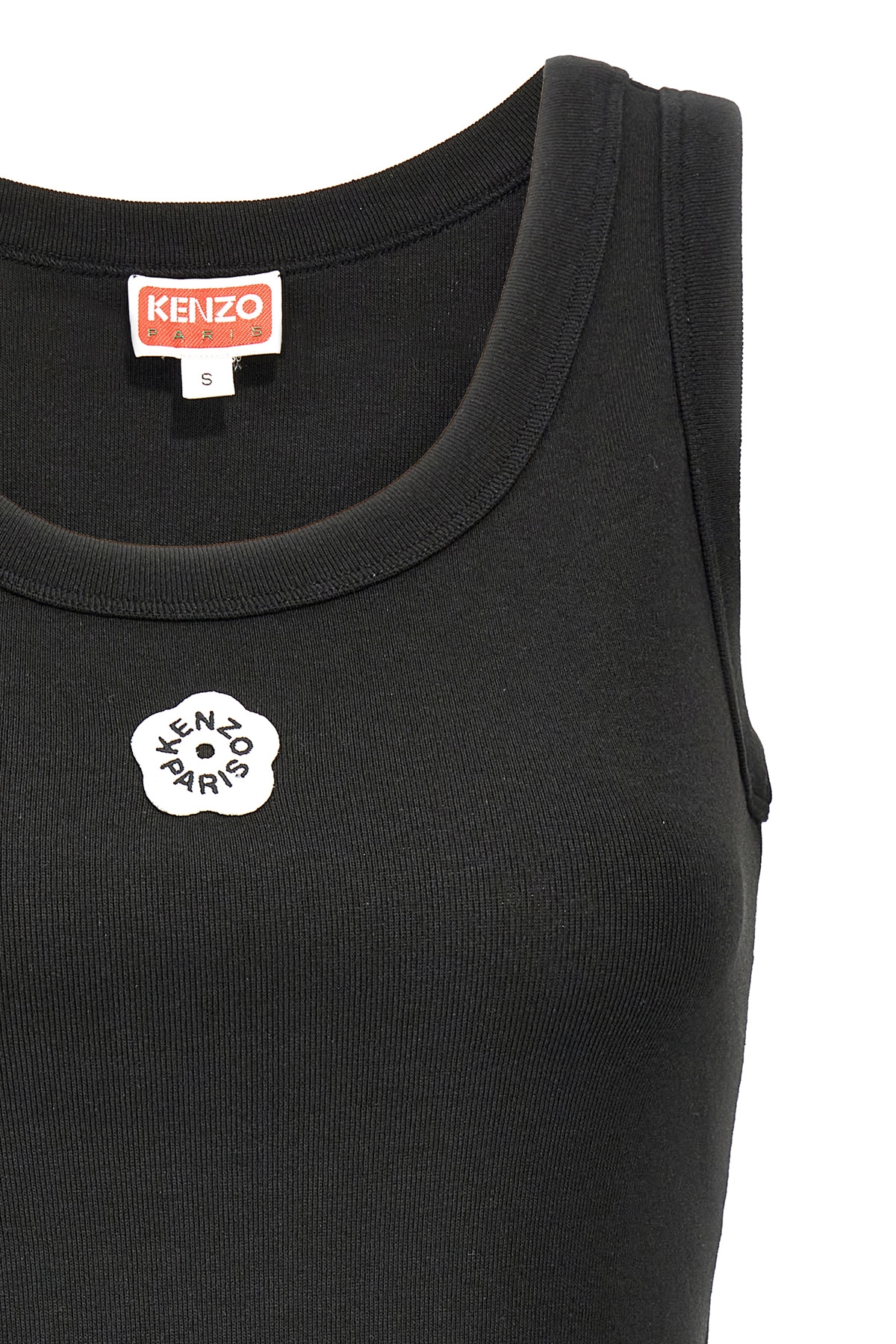 'Boke flower 2.0' sleeveless, stretch ribbed cotton top with round neckline, front logo patch.