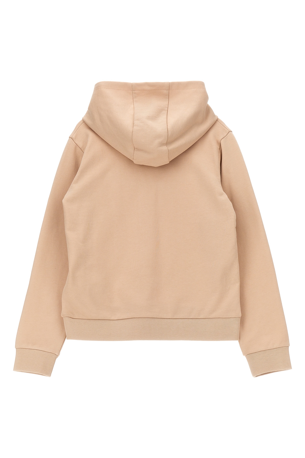 KIDS Gauze cotton hoodie with embroidery and front logo patch, long cuffed sleeves.