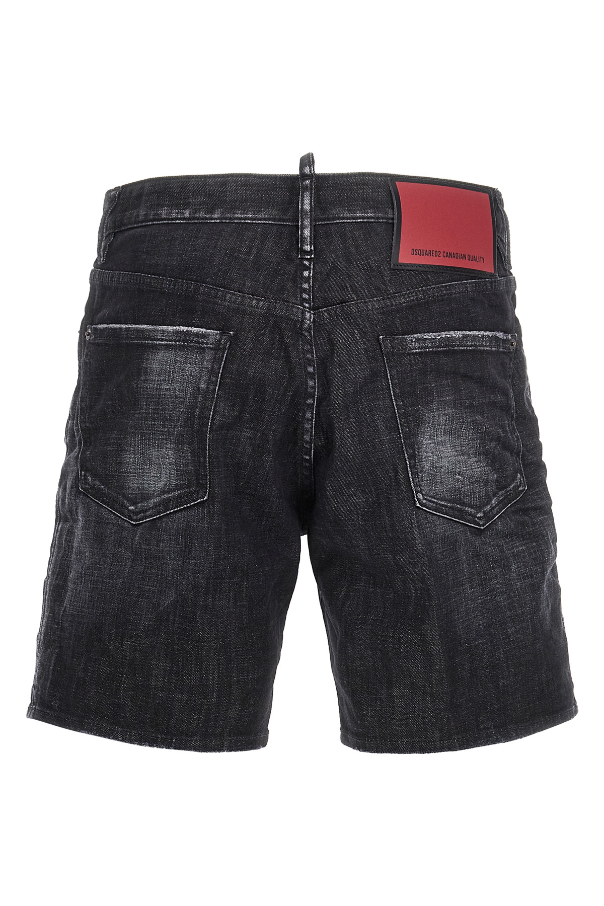 'Marine' bermuda shorts in used-effect cotton denim with five pockets, button closure, back leather logo tag.