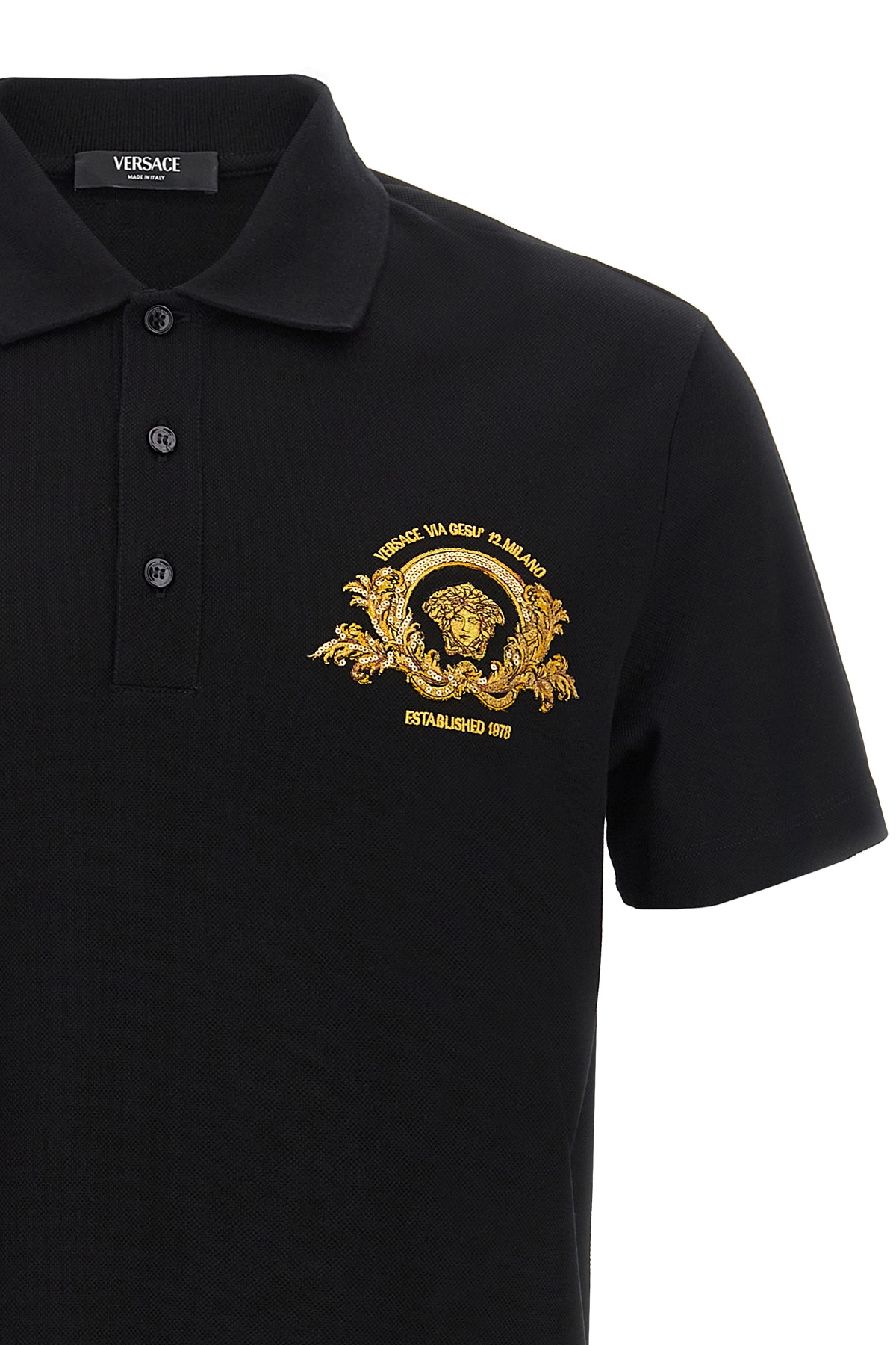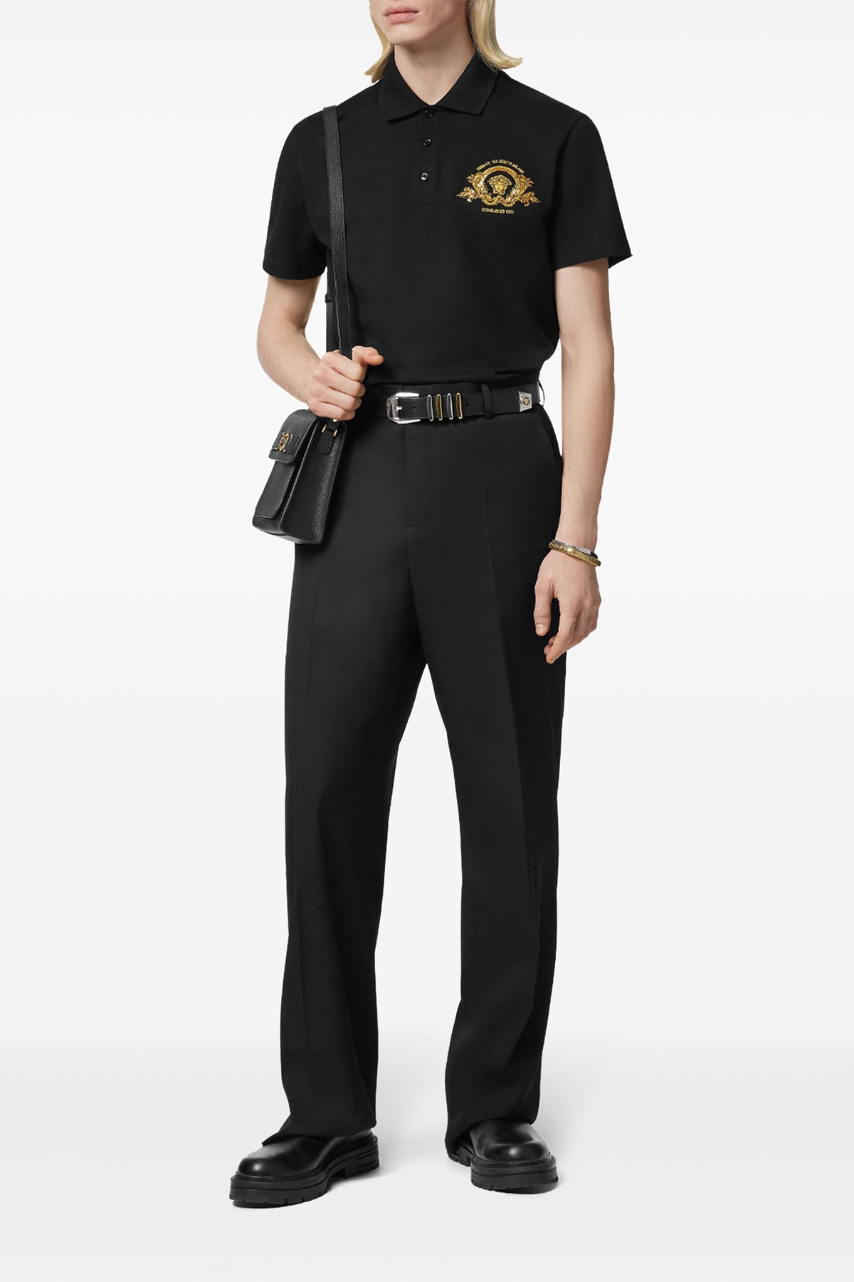 Cotton pique polo shirt with contrast 'Coupe Blason' embroidery on the front, collar and buttons, and short sleeves.