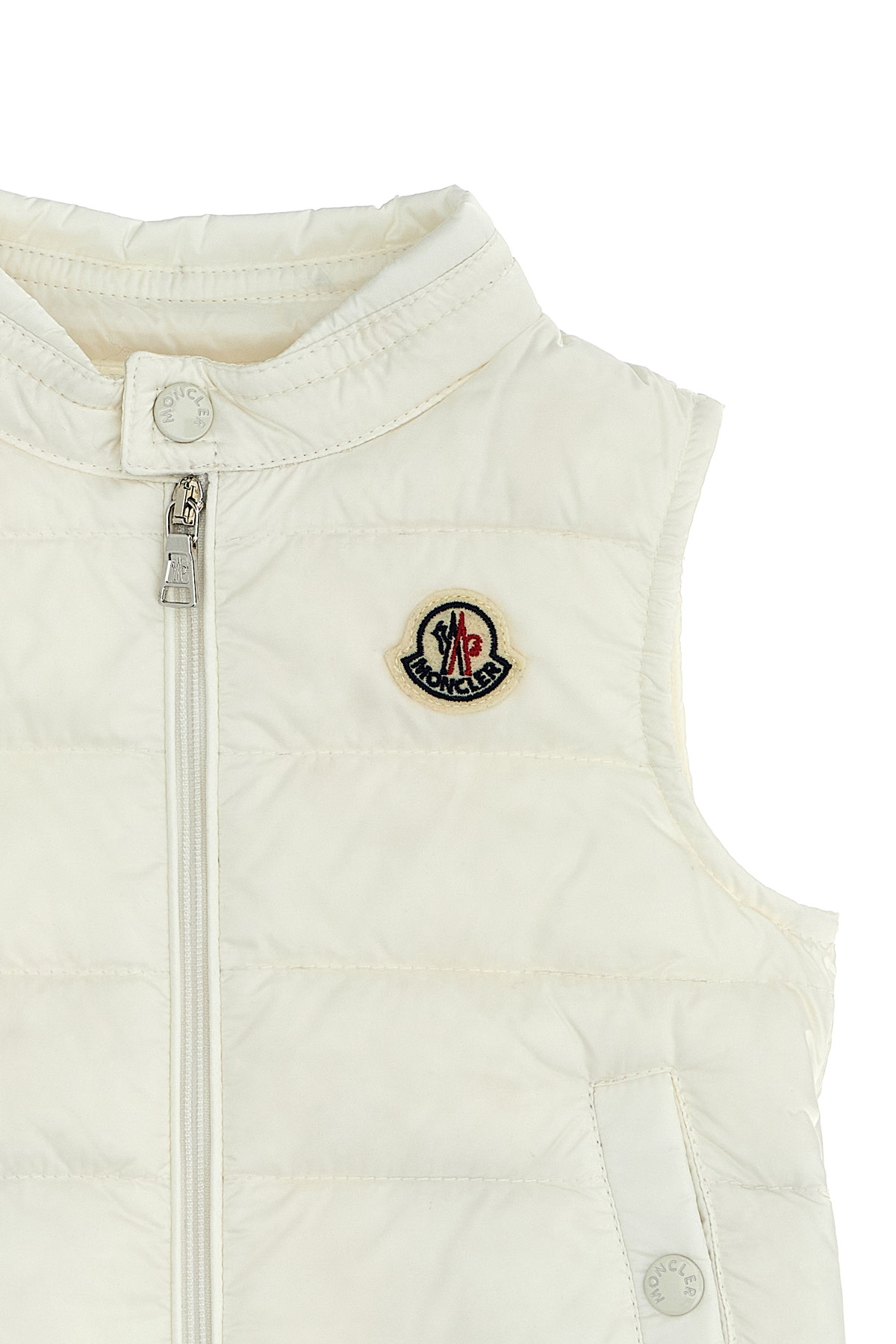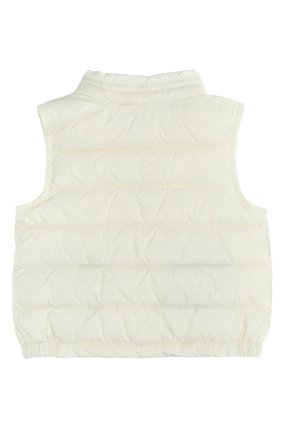 KIDS 'New Amaury' longue vest saison slightly padded with feather, front logo patch, high neck, zip closure, pockets, elastic at the hem, foldable. Midnight blue color. SUSTAINABLE: product made from recycled materials.