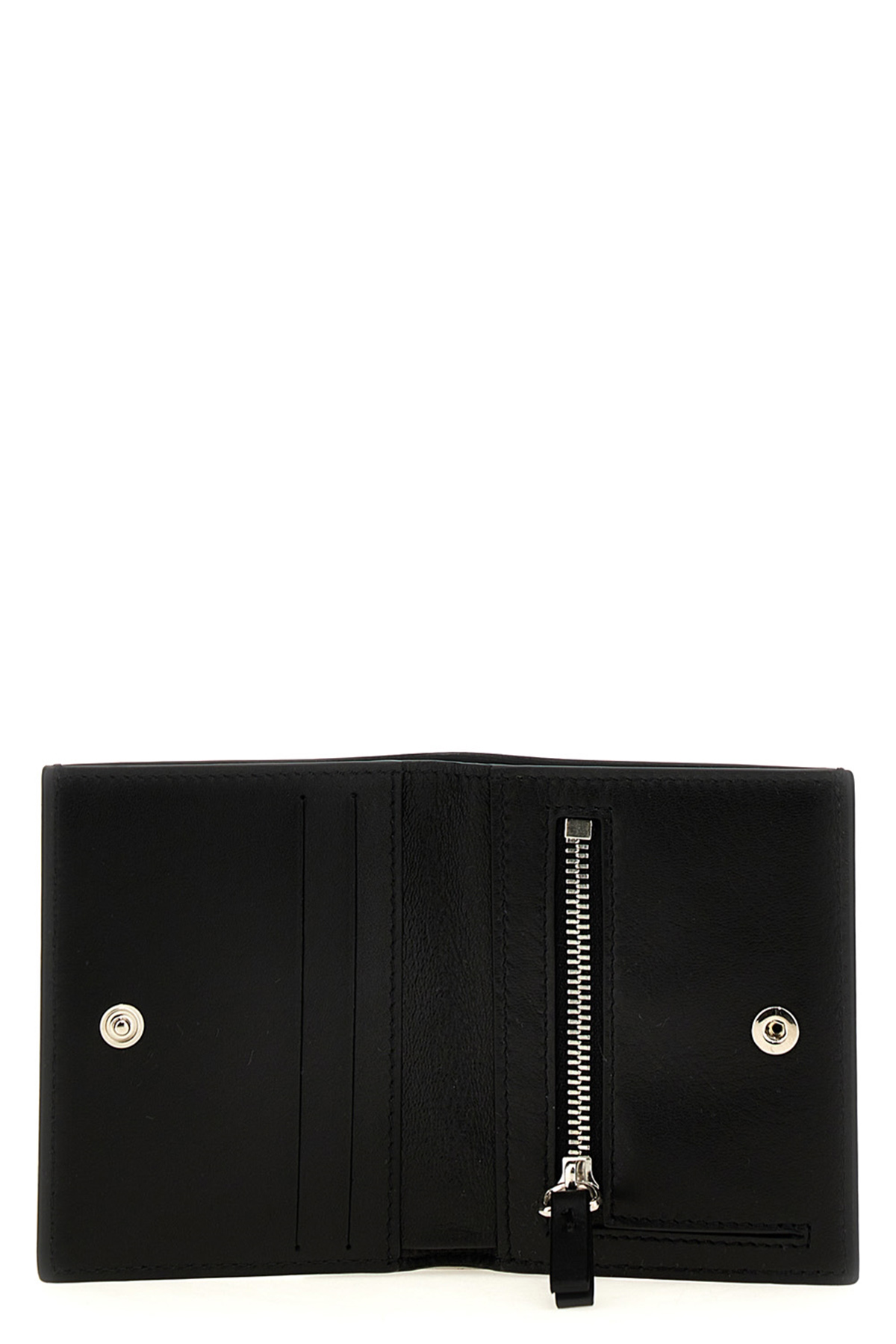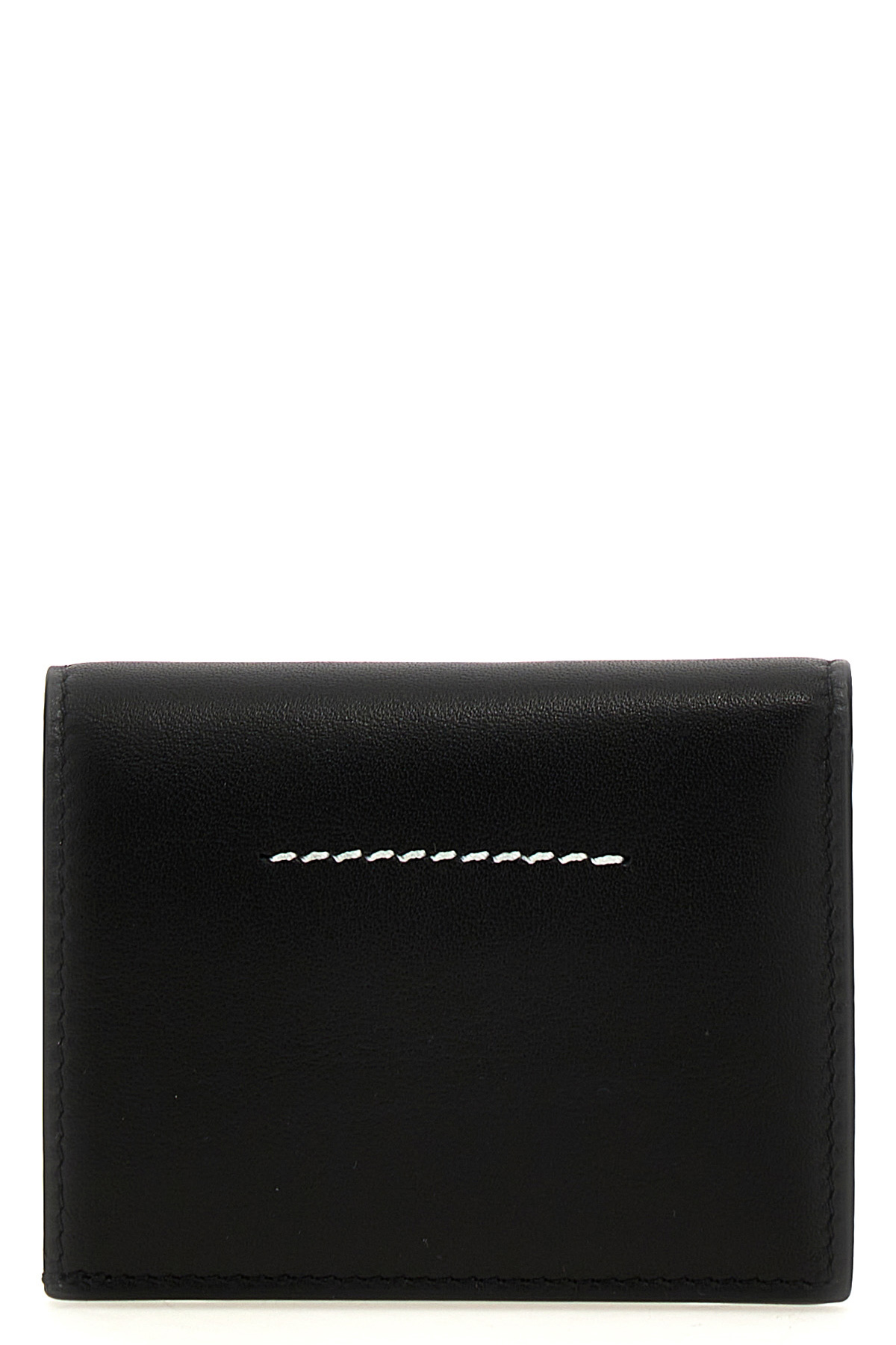 Smooth leather wallet with metal 'Numeric Signature MM6' logo applique on the front, 'White stitch line' on the back, and snap button closure.