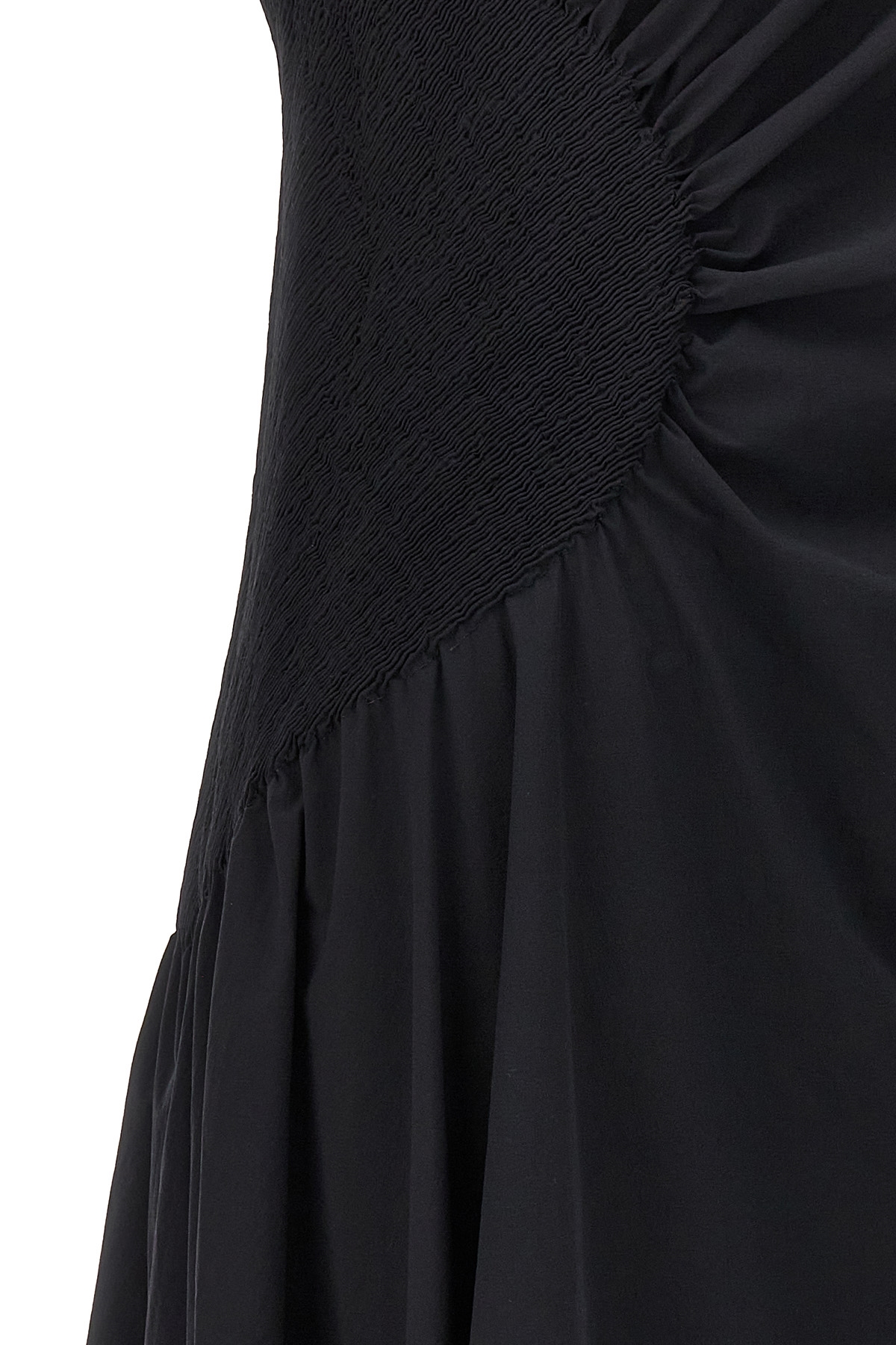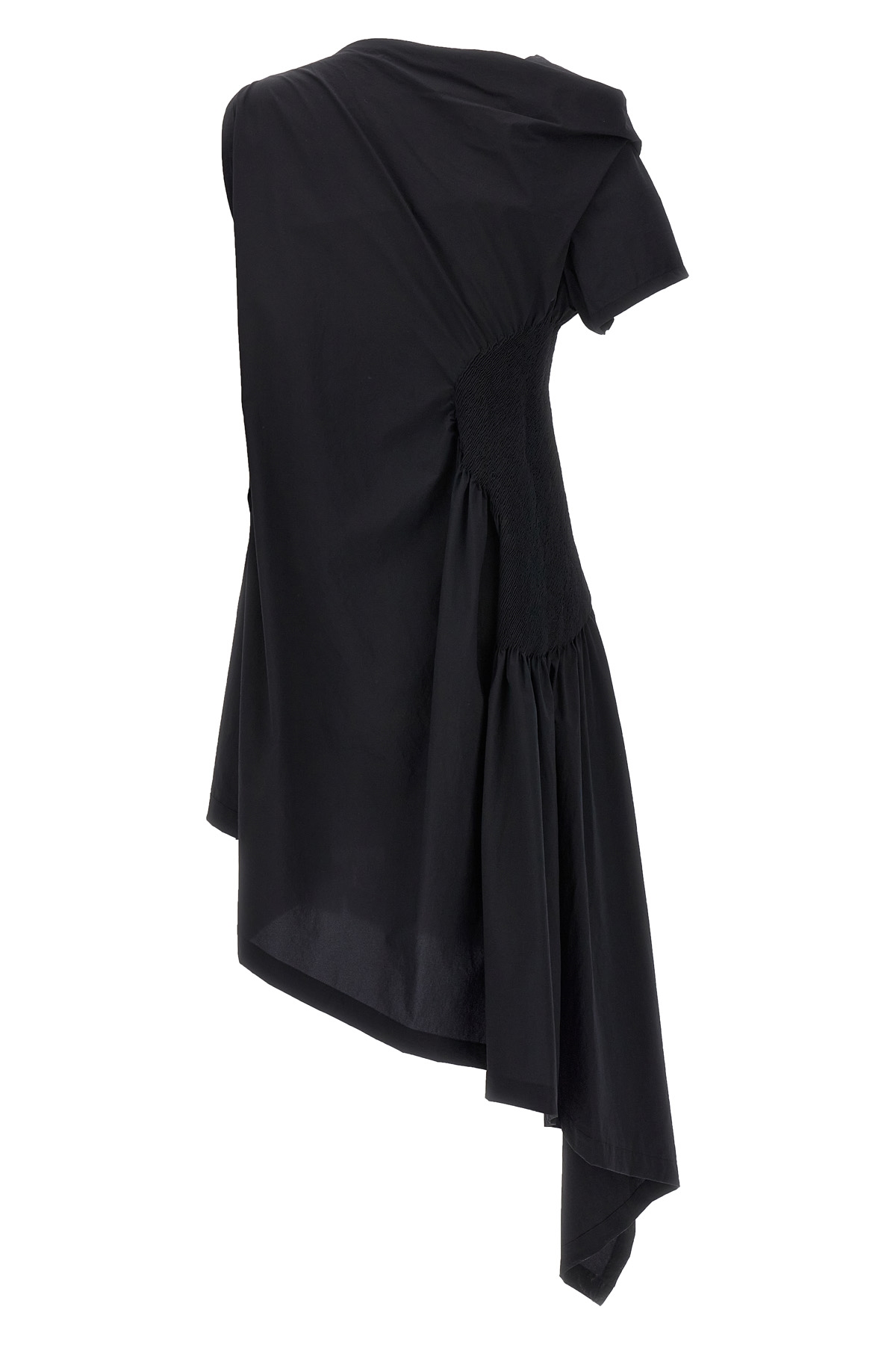 'Eye of the bean' stretch tech fabric asymmetrical dress with side ruched detail.