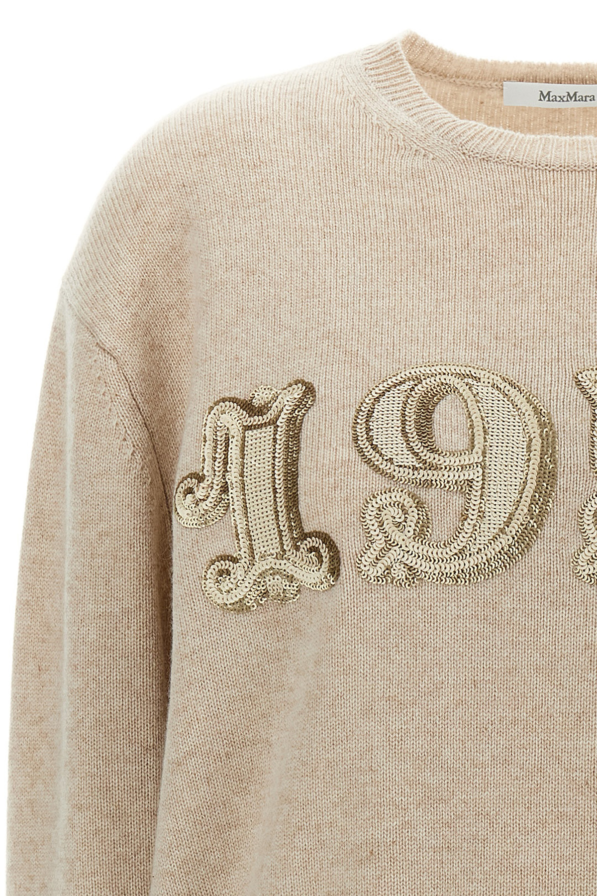 'Plata' wool and cashmere sweater with front sequin embroidery, crew neck, long cuffed sleeves.