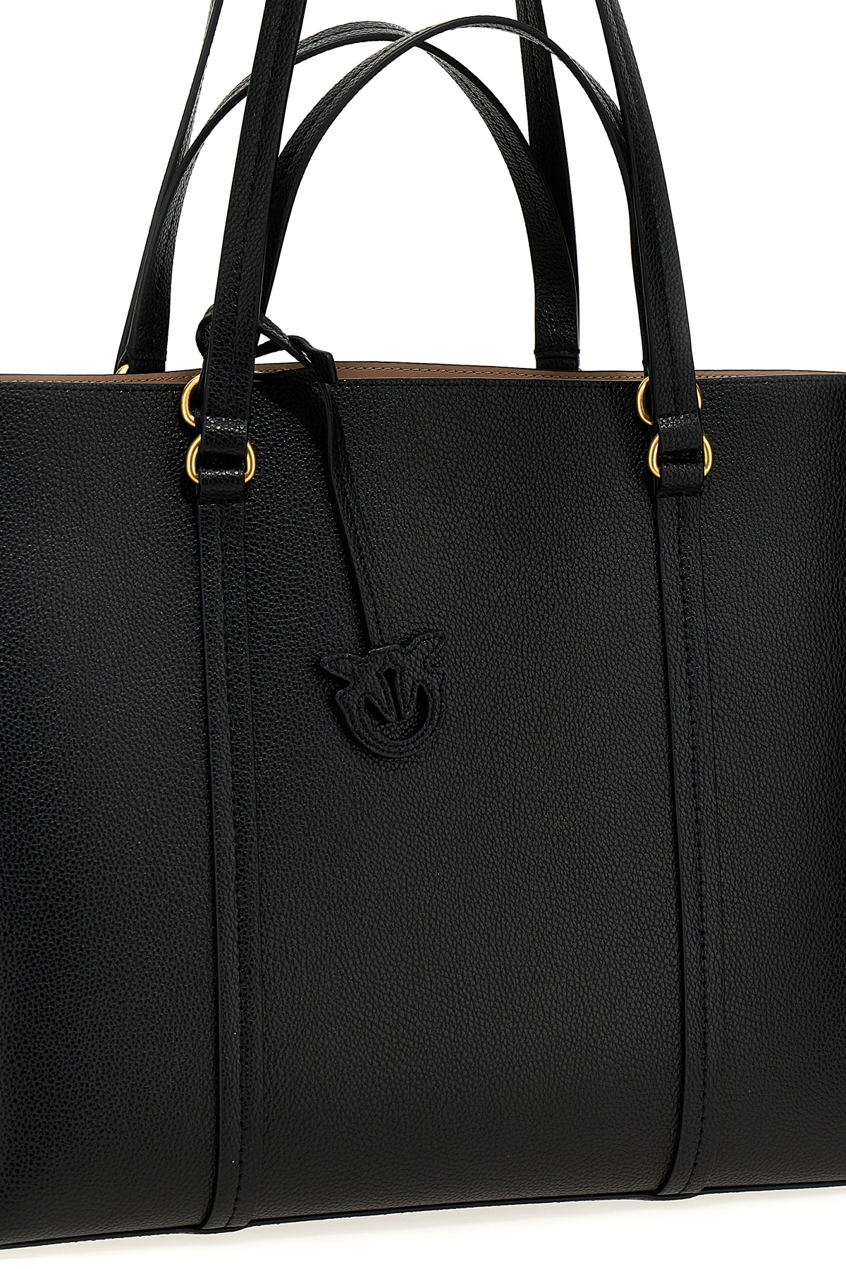'Carrie big' leather shopping bag with double fixed handle, a short one to be carried by hand and a long one to be carried on the shoulder, leather charm.