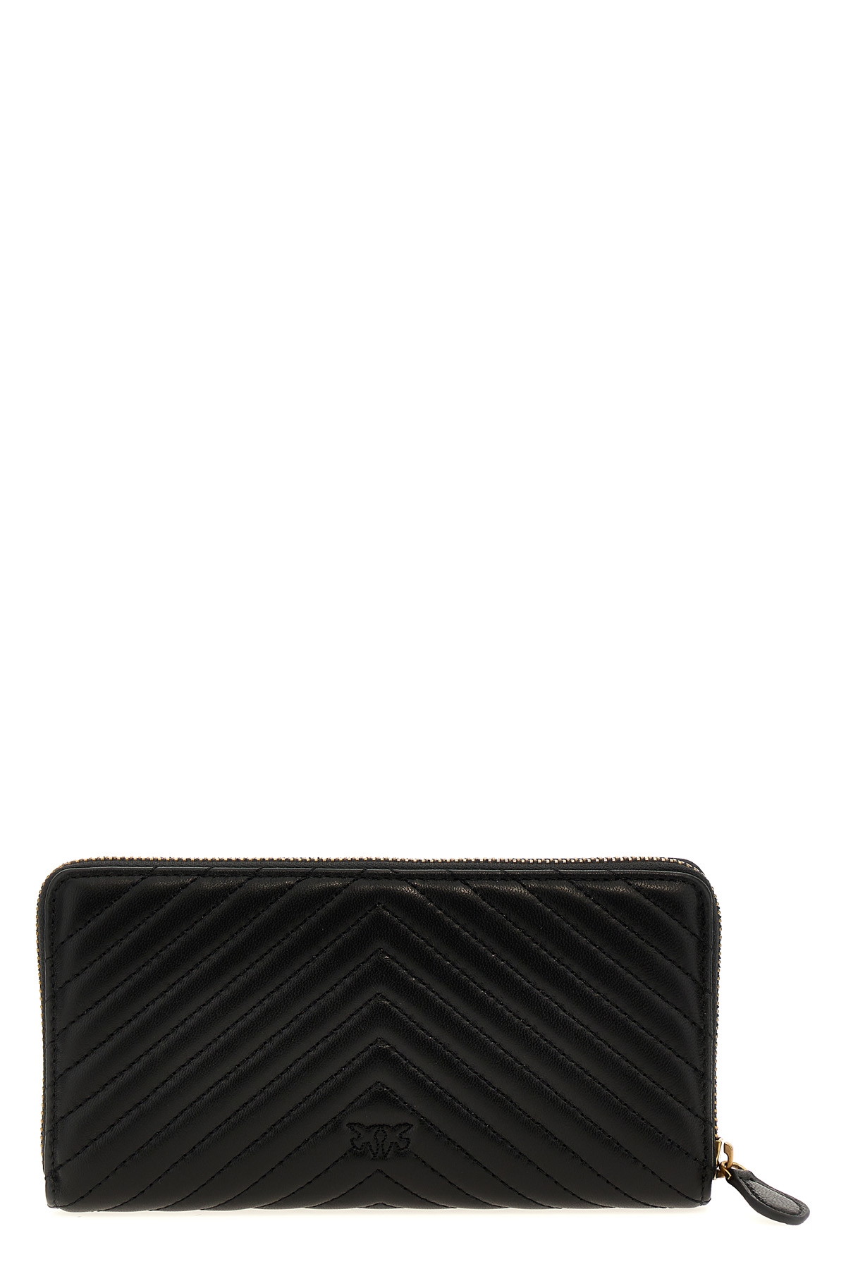 'Ryder' wallet in chevron nappa leather, front logo, zip closure.