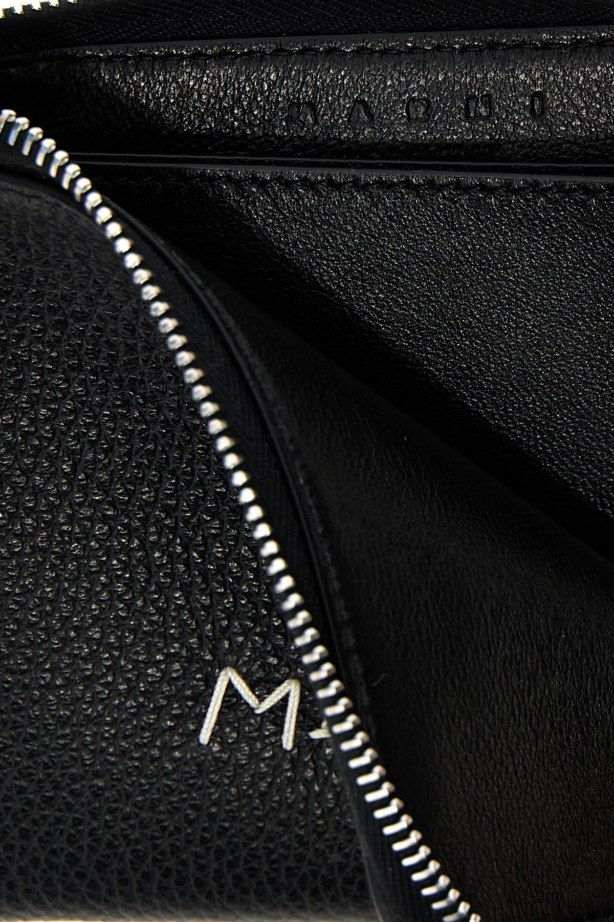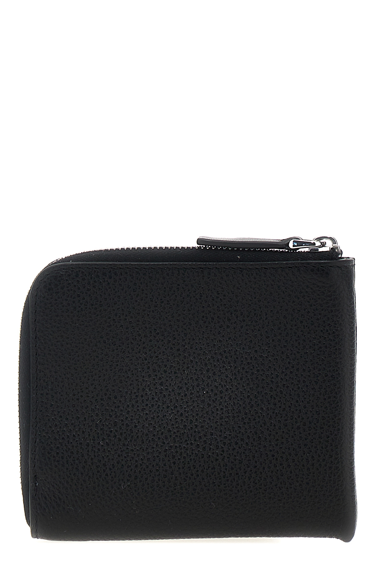 Hammered leather wallet, front logo lettering with contrast stitching, zip closure.