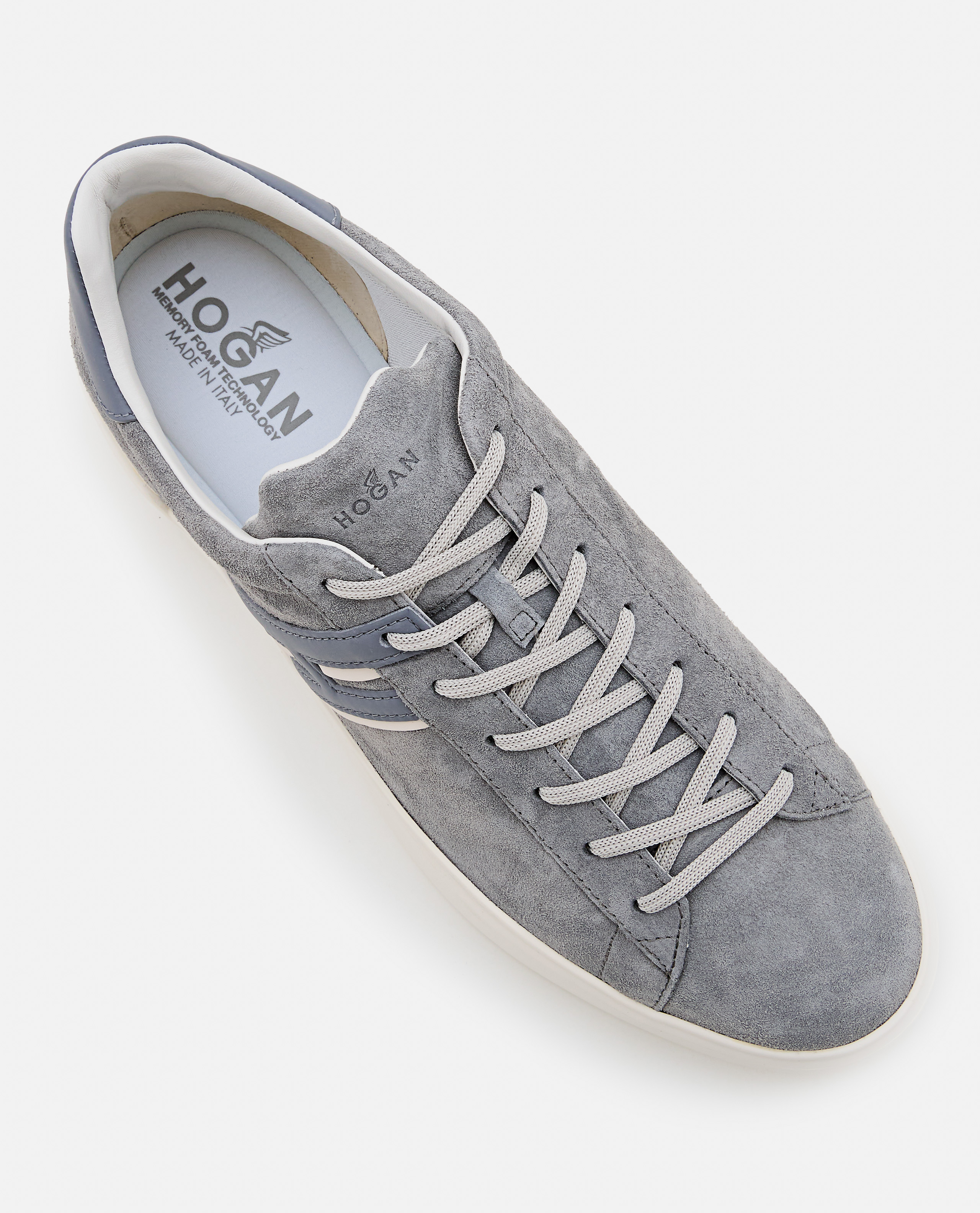 Lace up shoes.Leather upper.Rubber sole.Side logo detail.Color: grey