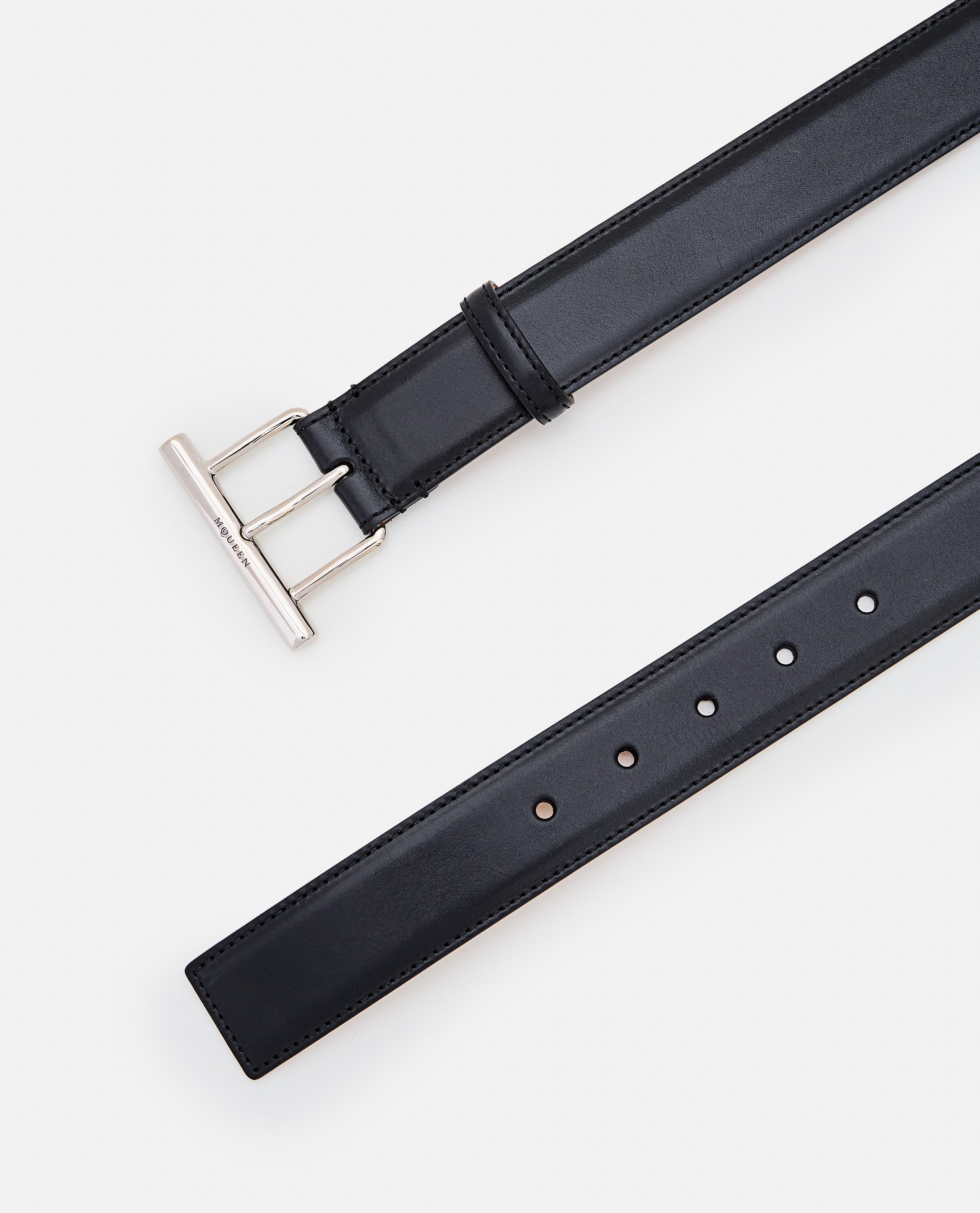 Item made of leather.Nickel-plated metal buckle.Belt height: 3.5cm.Color: black
