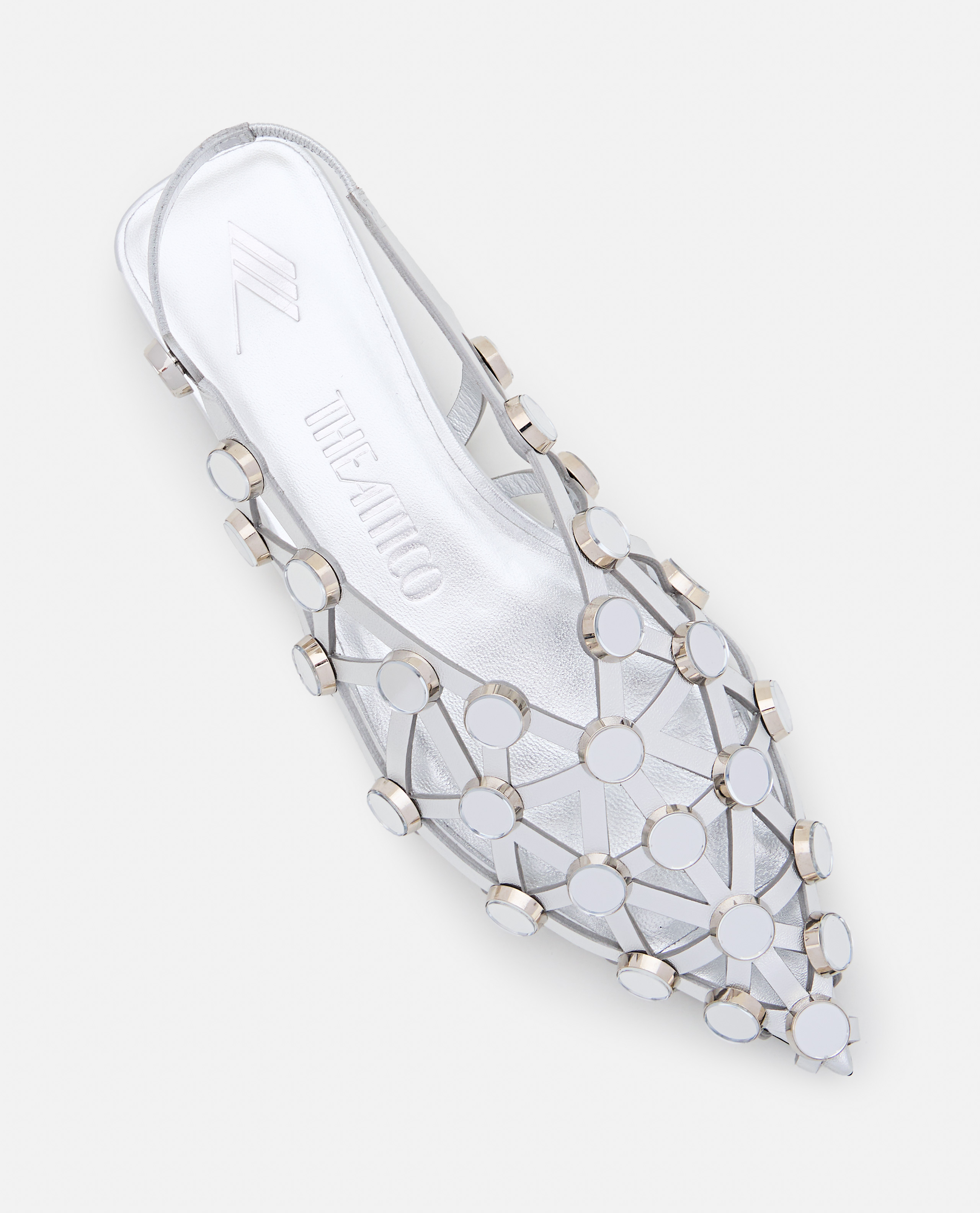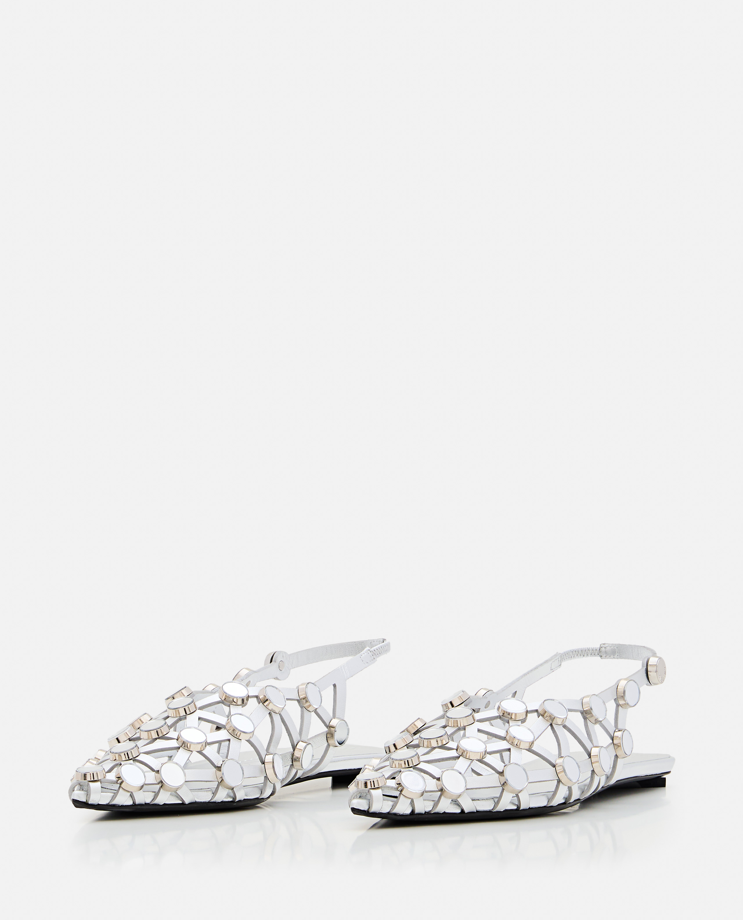 ''Grid'' ballerina in silver leather with mirror application, height 05mm.