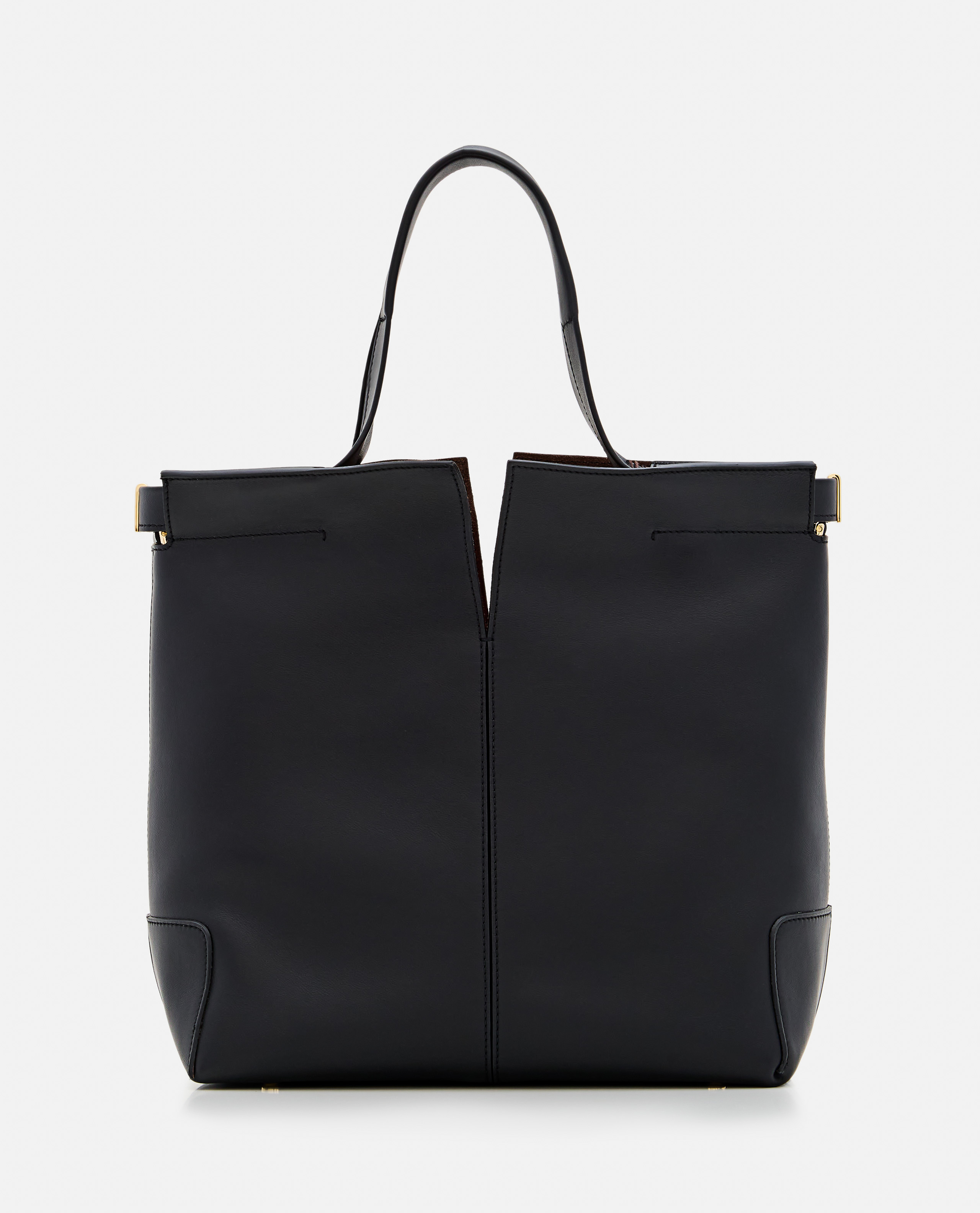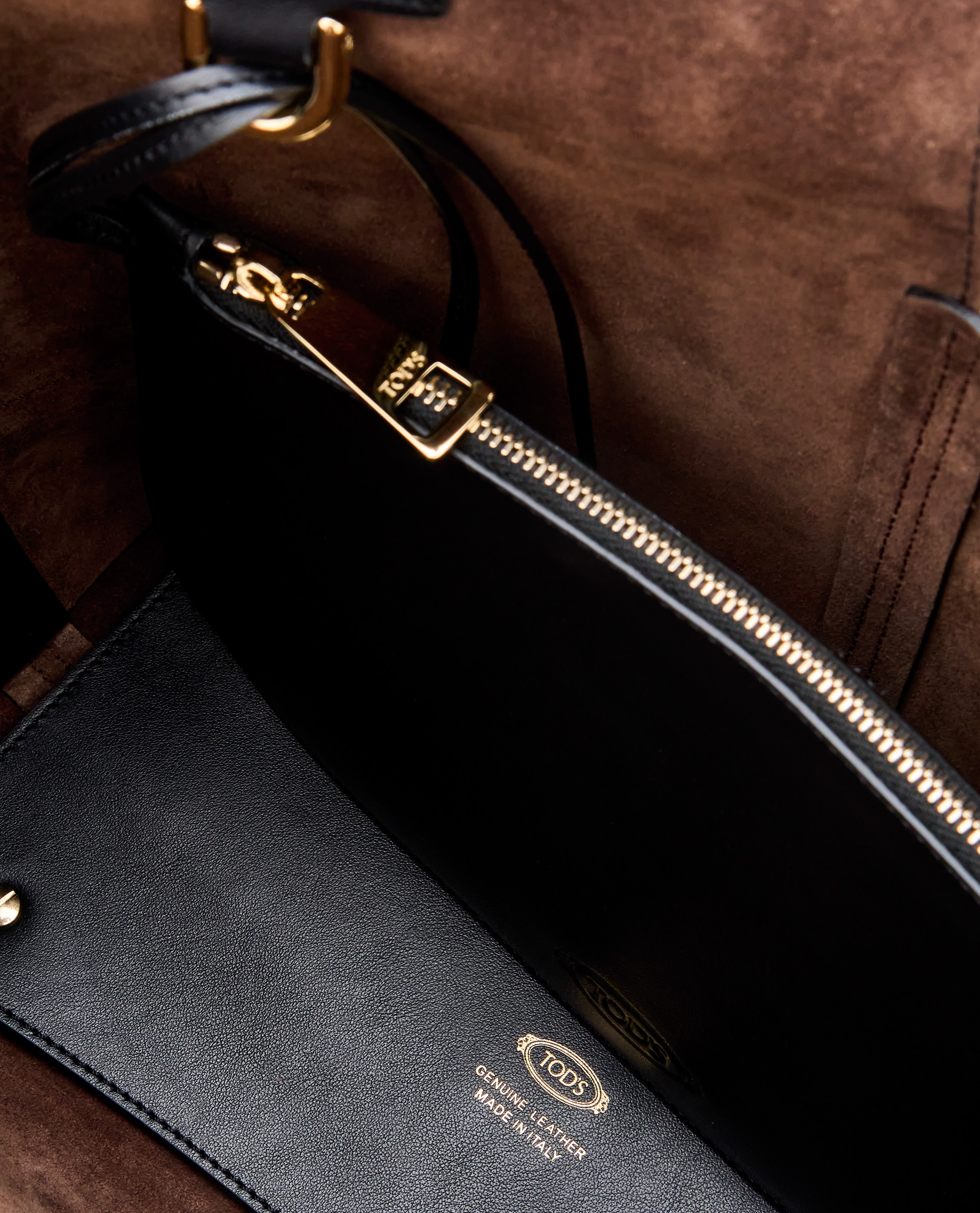 Shoulder tote bag with two handles.Suede interior.Logo on the front.Color: black