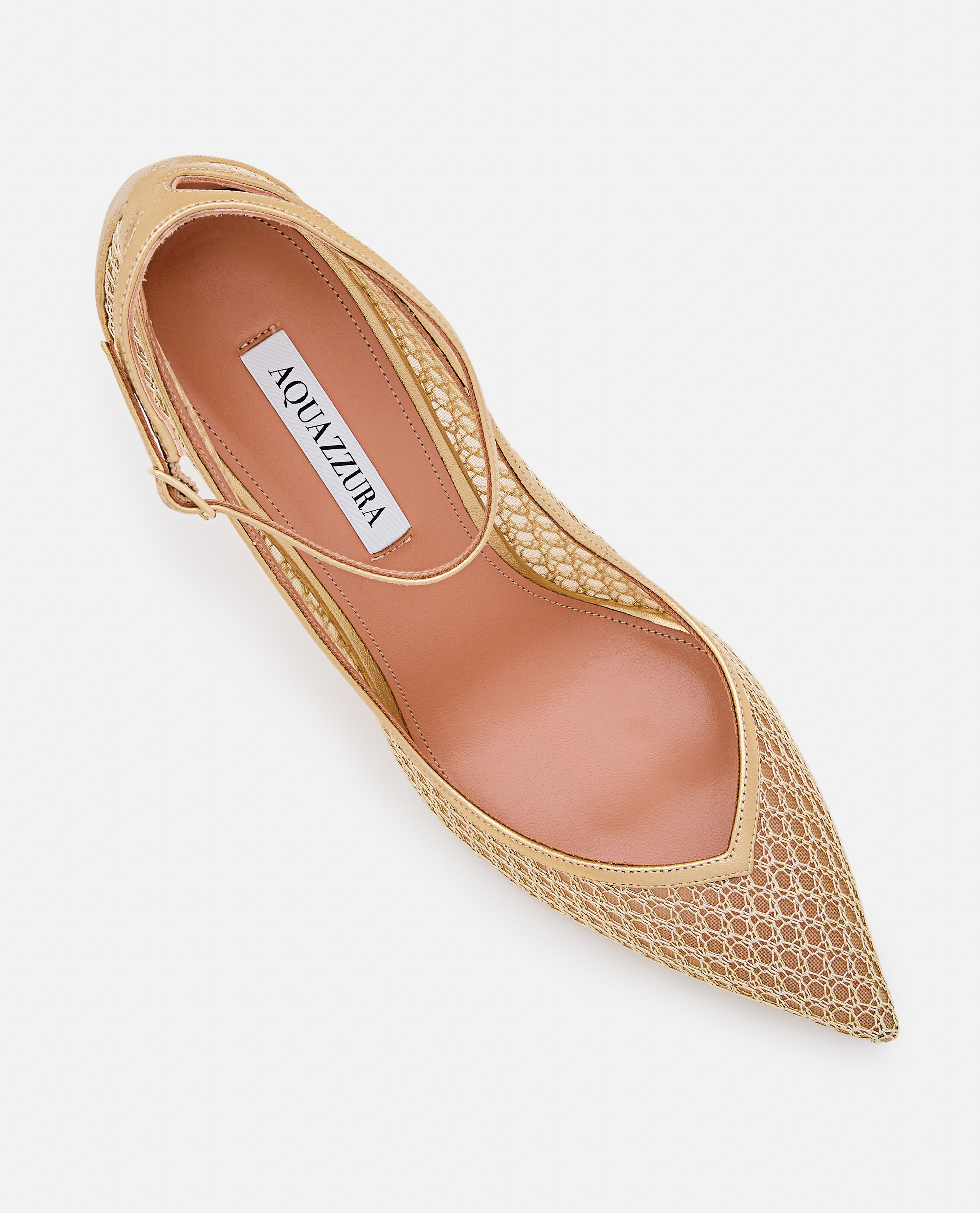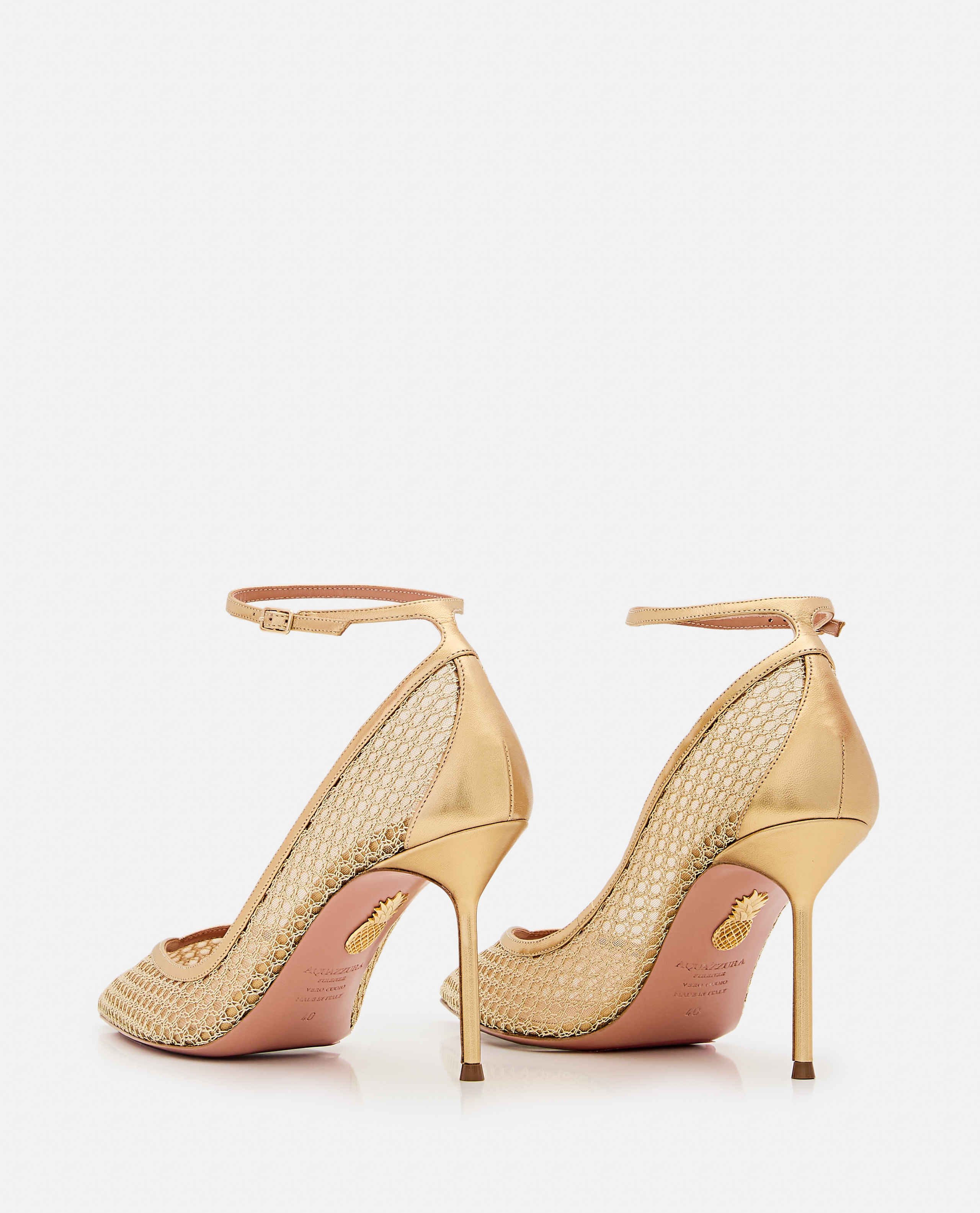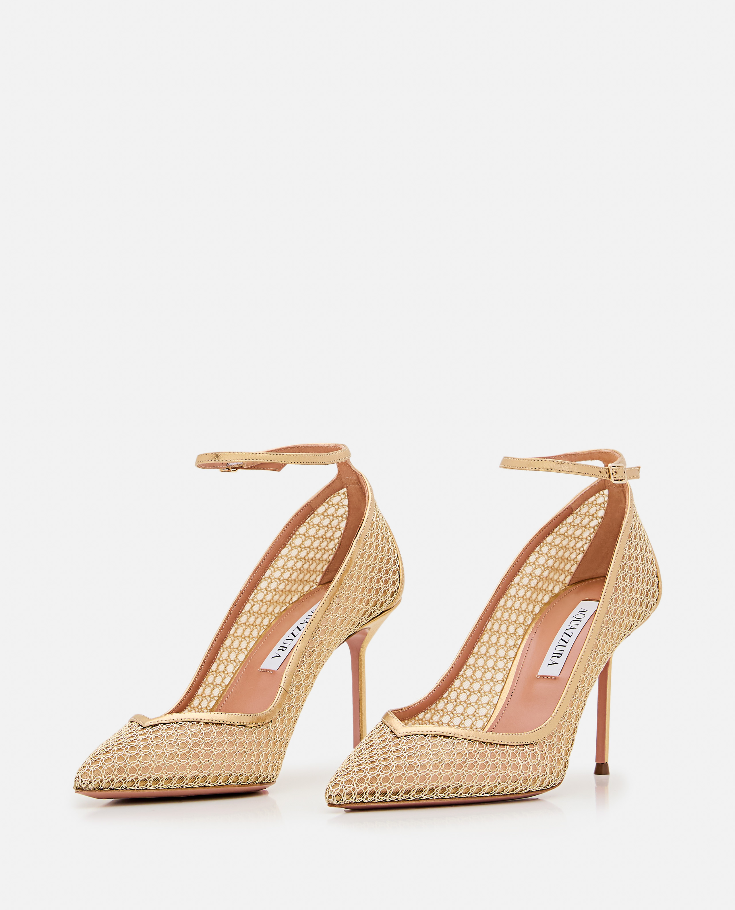 Pointed pump with ankle strap. Heel 8.5 cm. Color: gold
