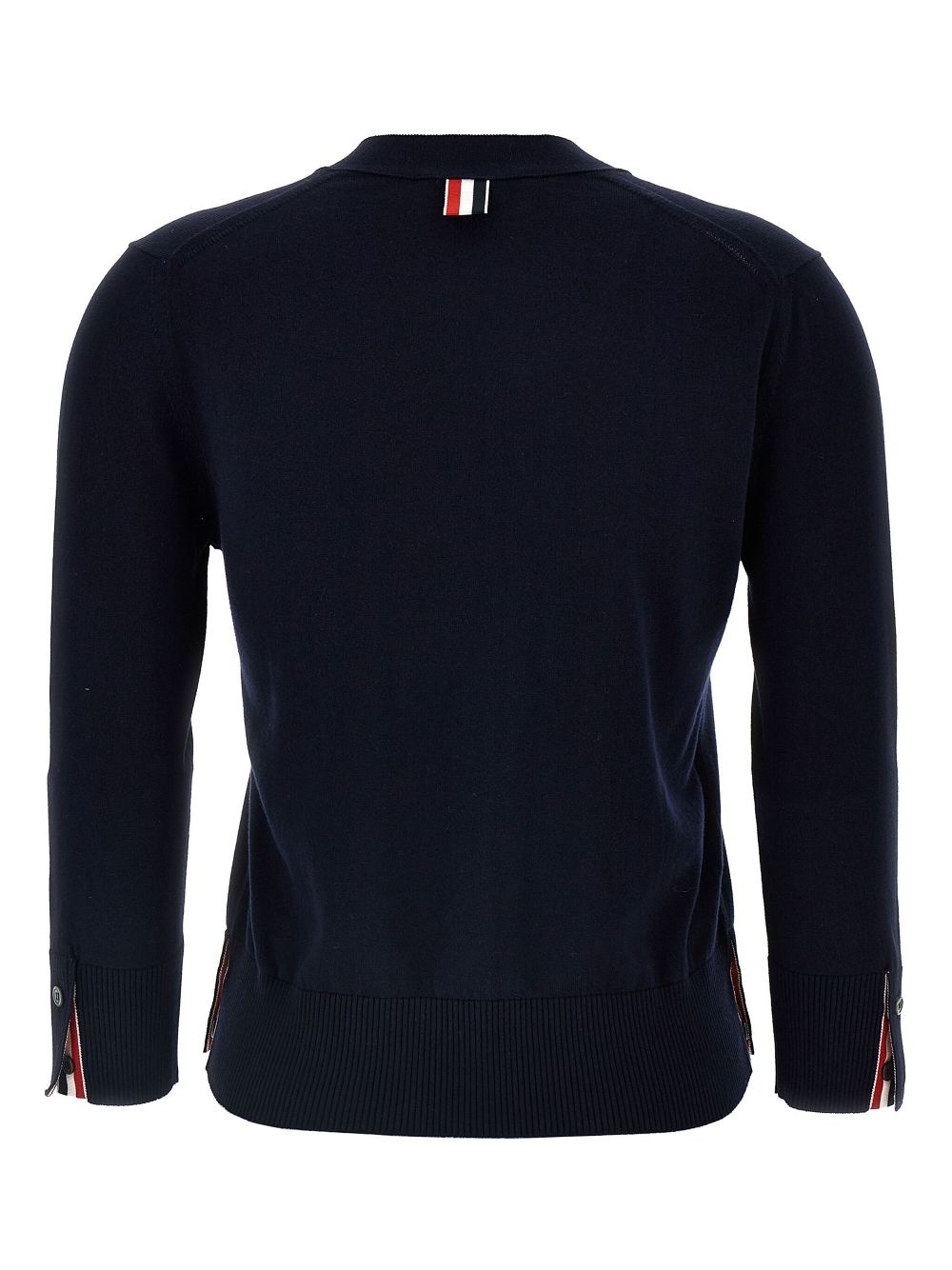 navy blue front button fastening V-neck signature 4-Bar stripe RWB stripe