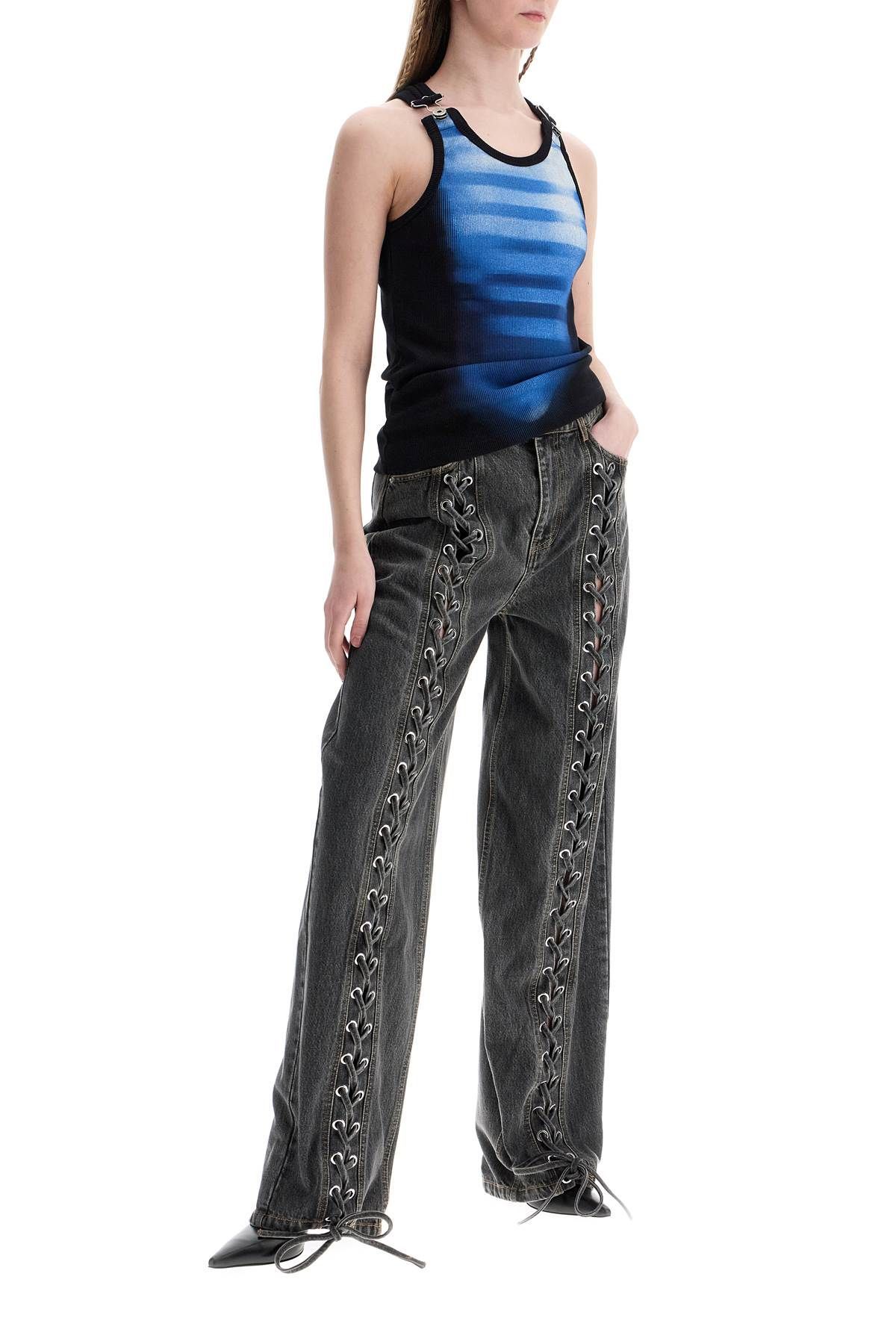 슬리브리스 블루 코튼 스트라이프 탑 le male 위드 와이드 넥라인