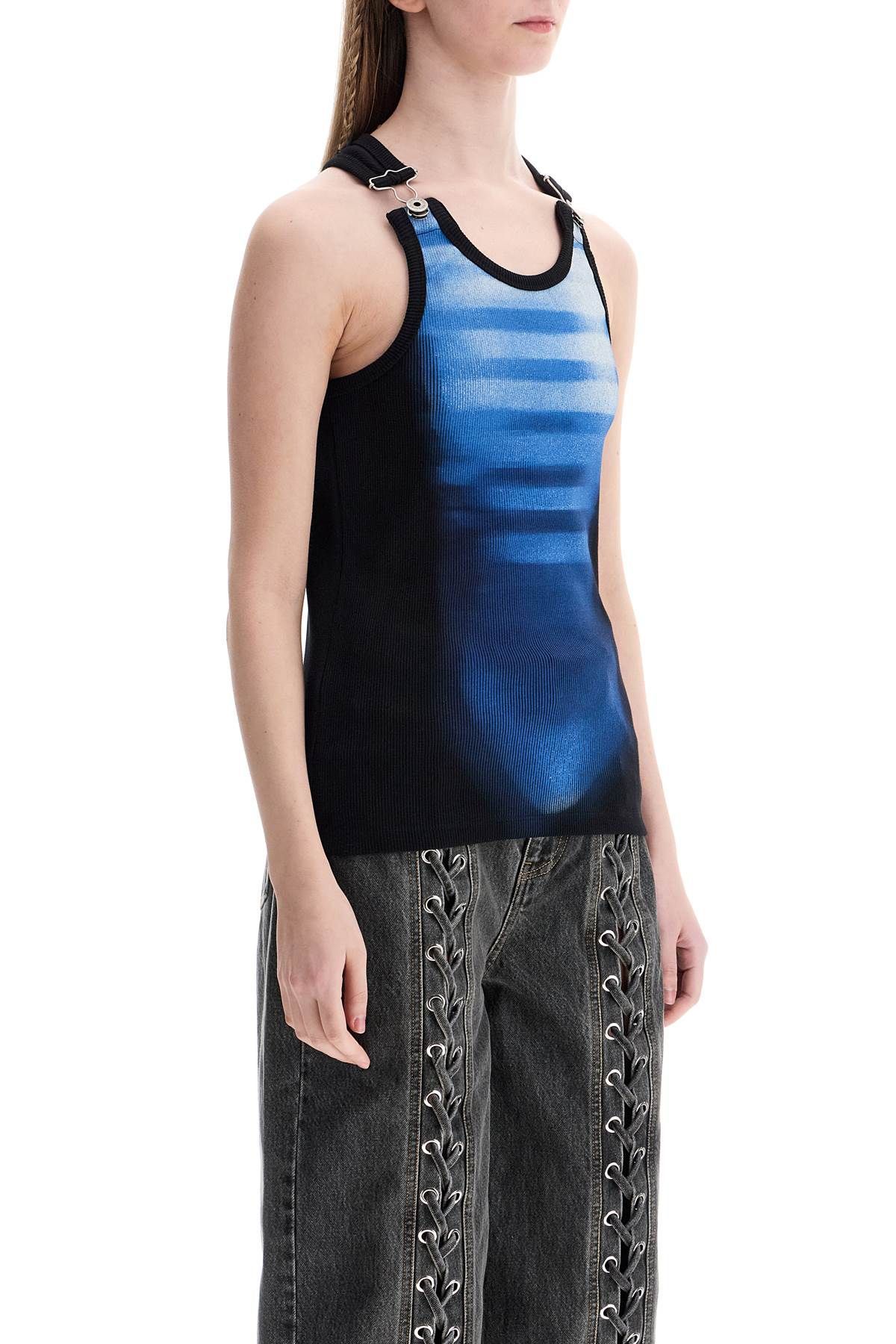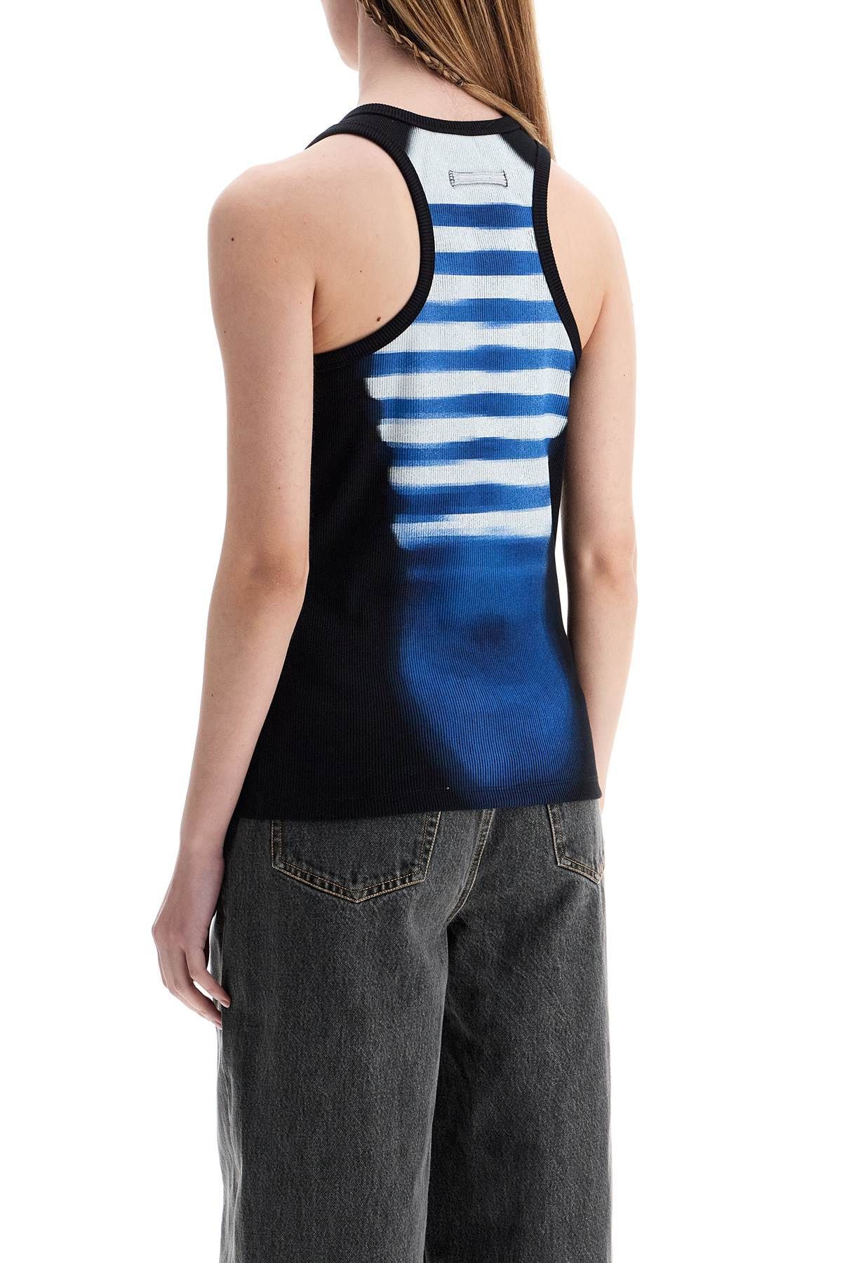 > 슬리브리스 블루 코튼 스트라이프 탑 le male 위드 와이드 넥라인