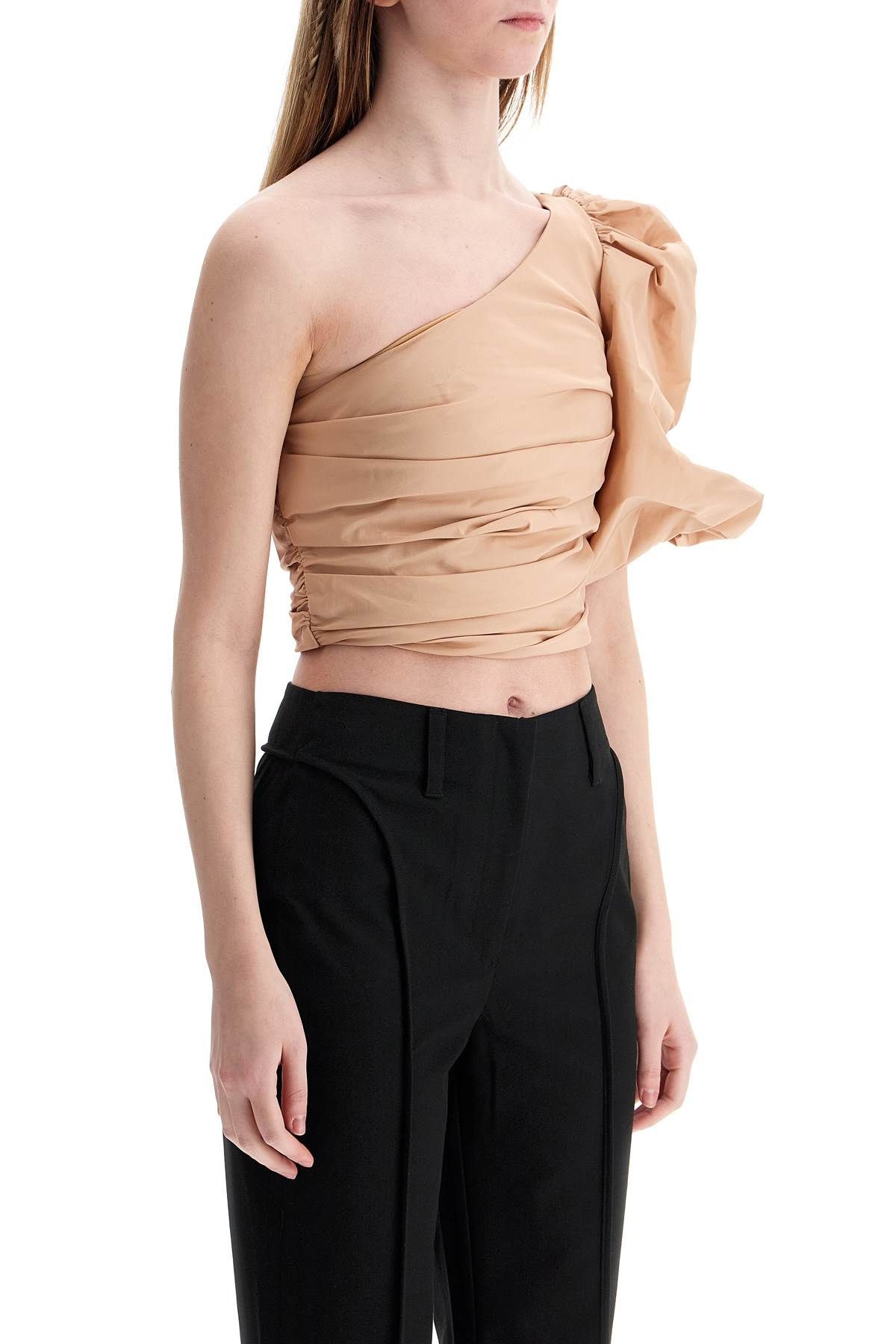 The PINKO Asymmetrical Taffeta Top offers timeless elegance