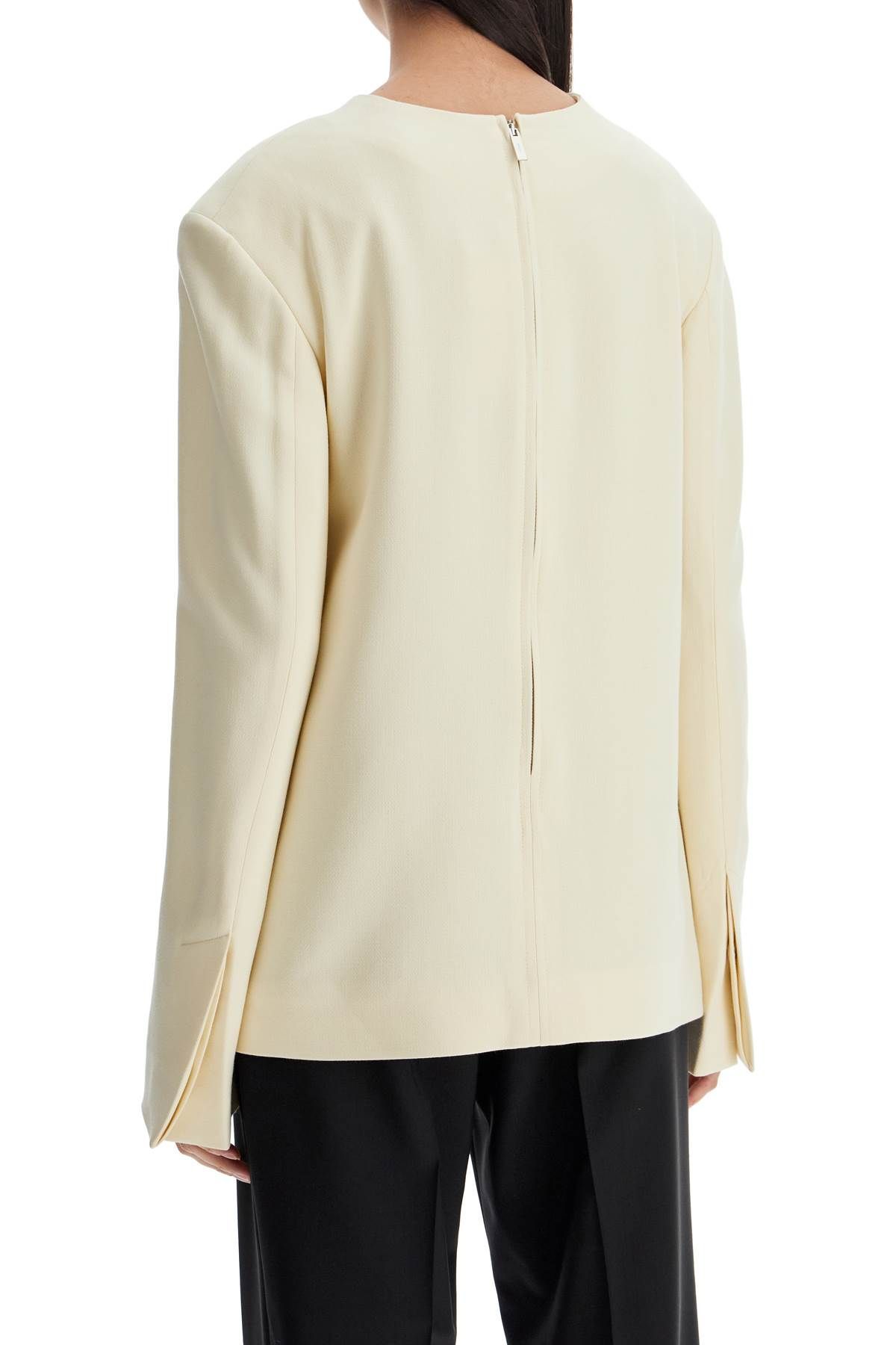 베이지 롱 슬리브 탑 위드 어플라이드 포켓 in 비스코스 and 울
