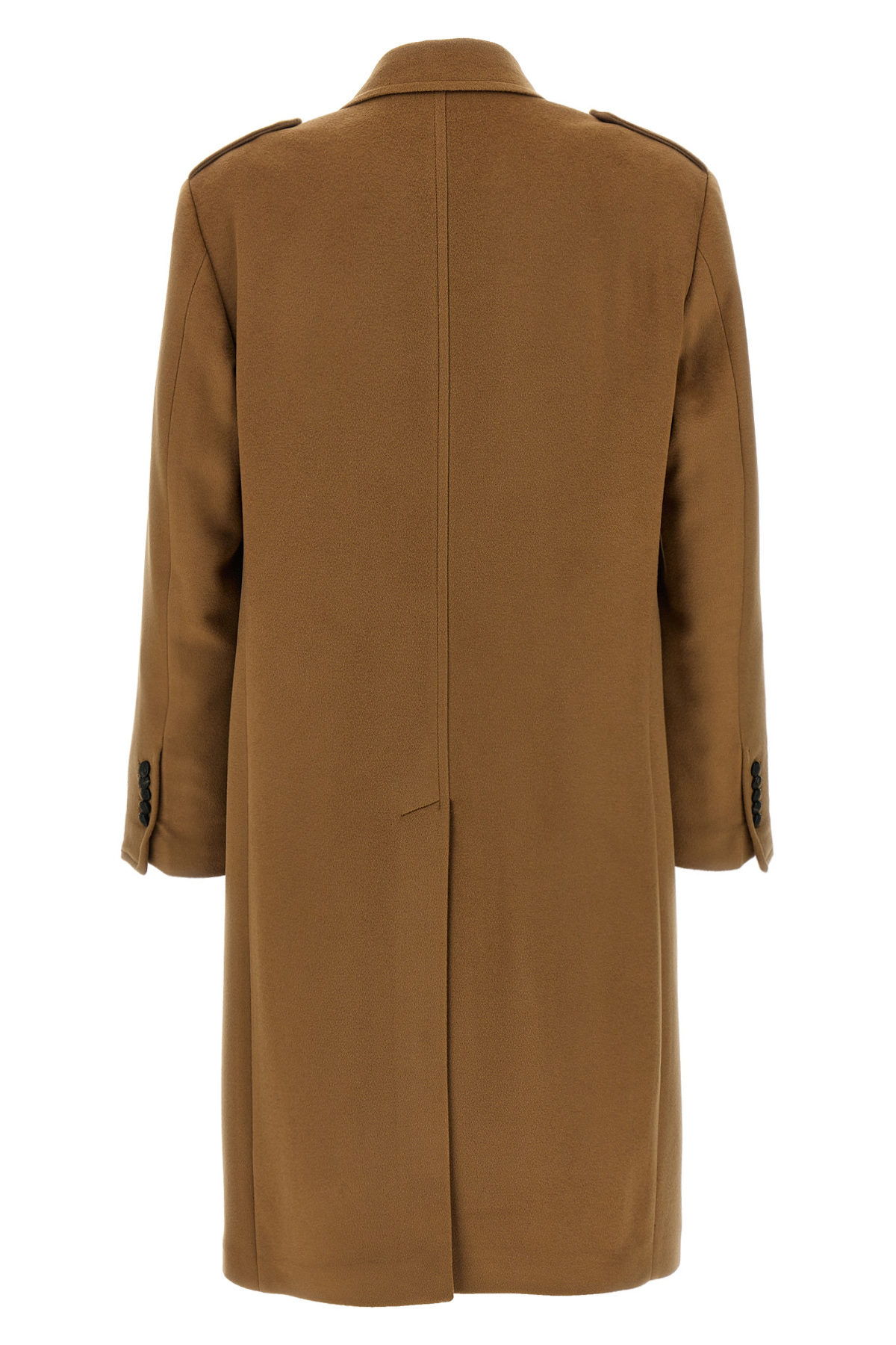 540 gr wool double-breasted coat, button closure, pockets, long sleeves, back split.